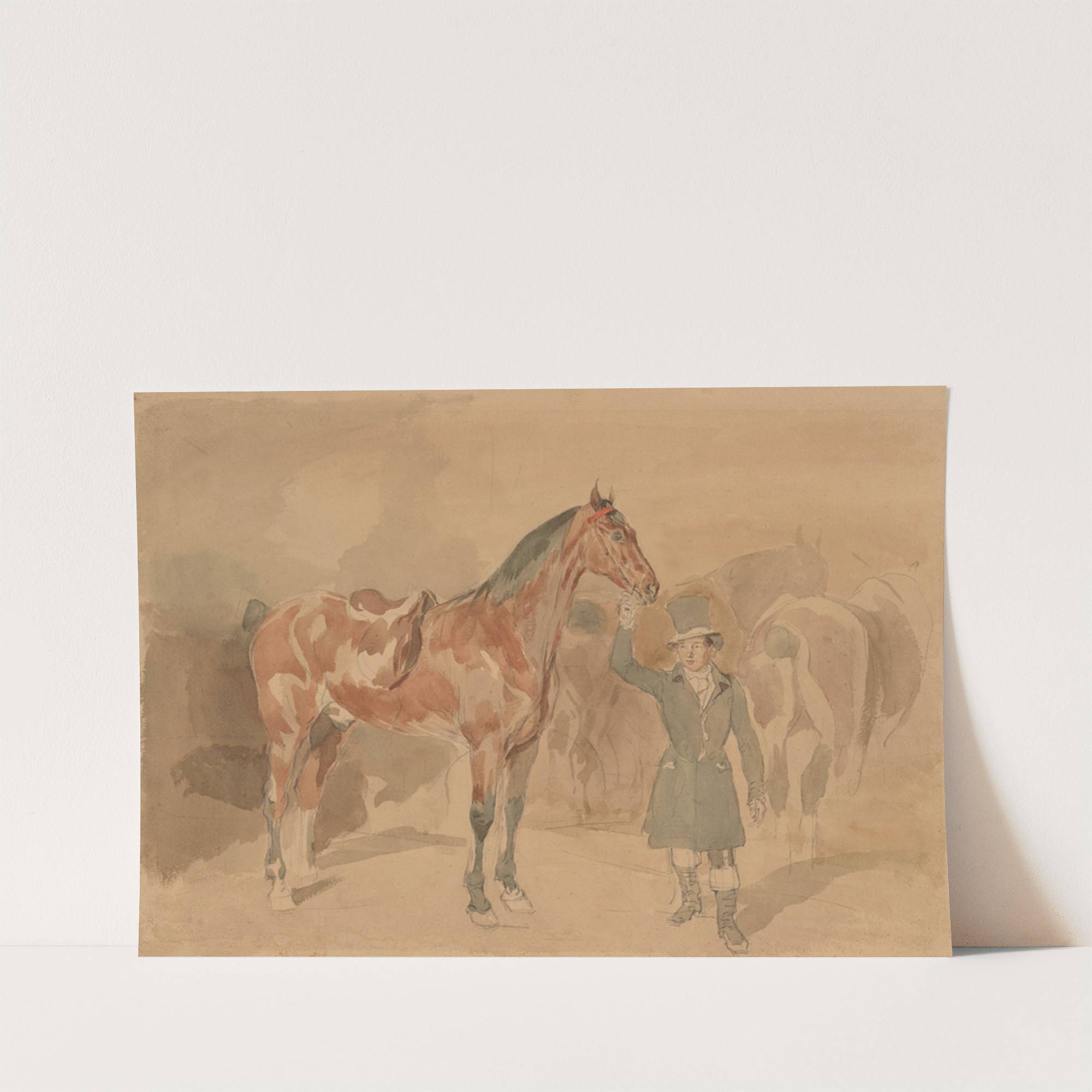 Horseman with a horse by Piotr Michałowski - Wall Art Print