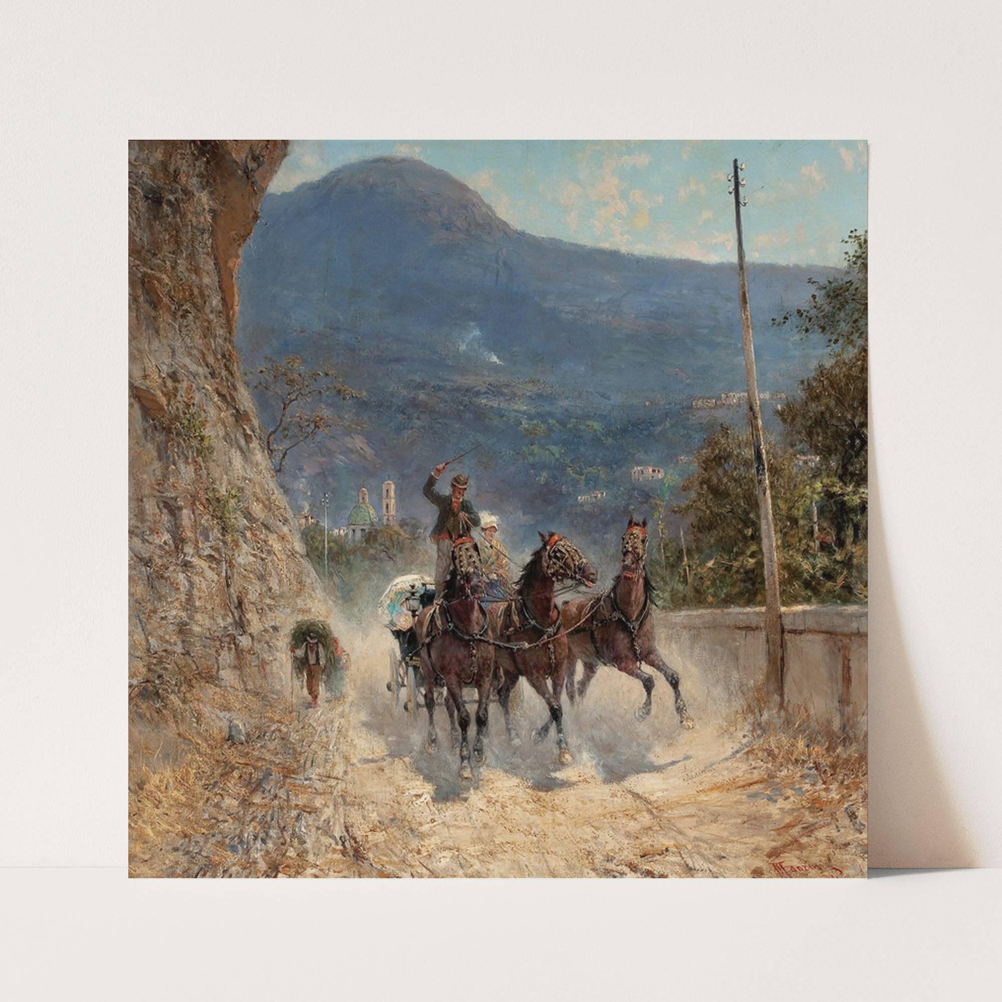 Horses and Travelers Ascending an Italian Mountain Road (1881) by Francesco Mancini - Wall Art Print