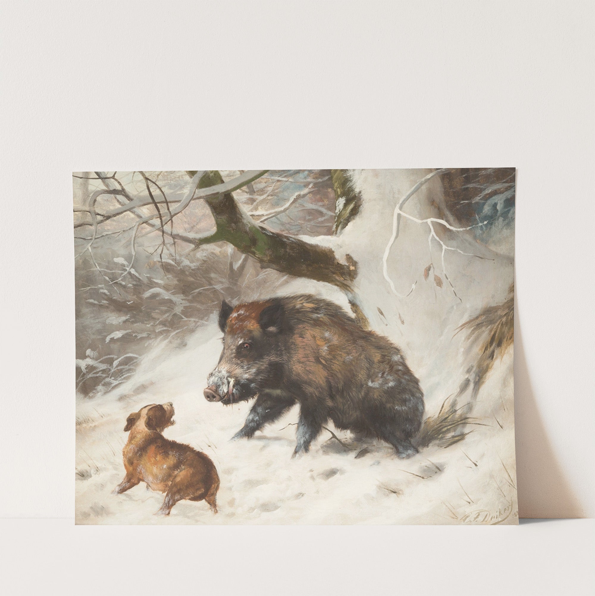 Hound tracking down a wild boar (1888) by Carl Friedrich Deiker - Wall Art Print