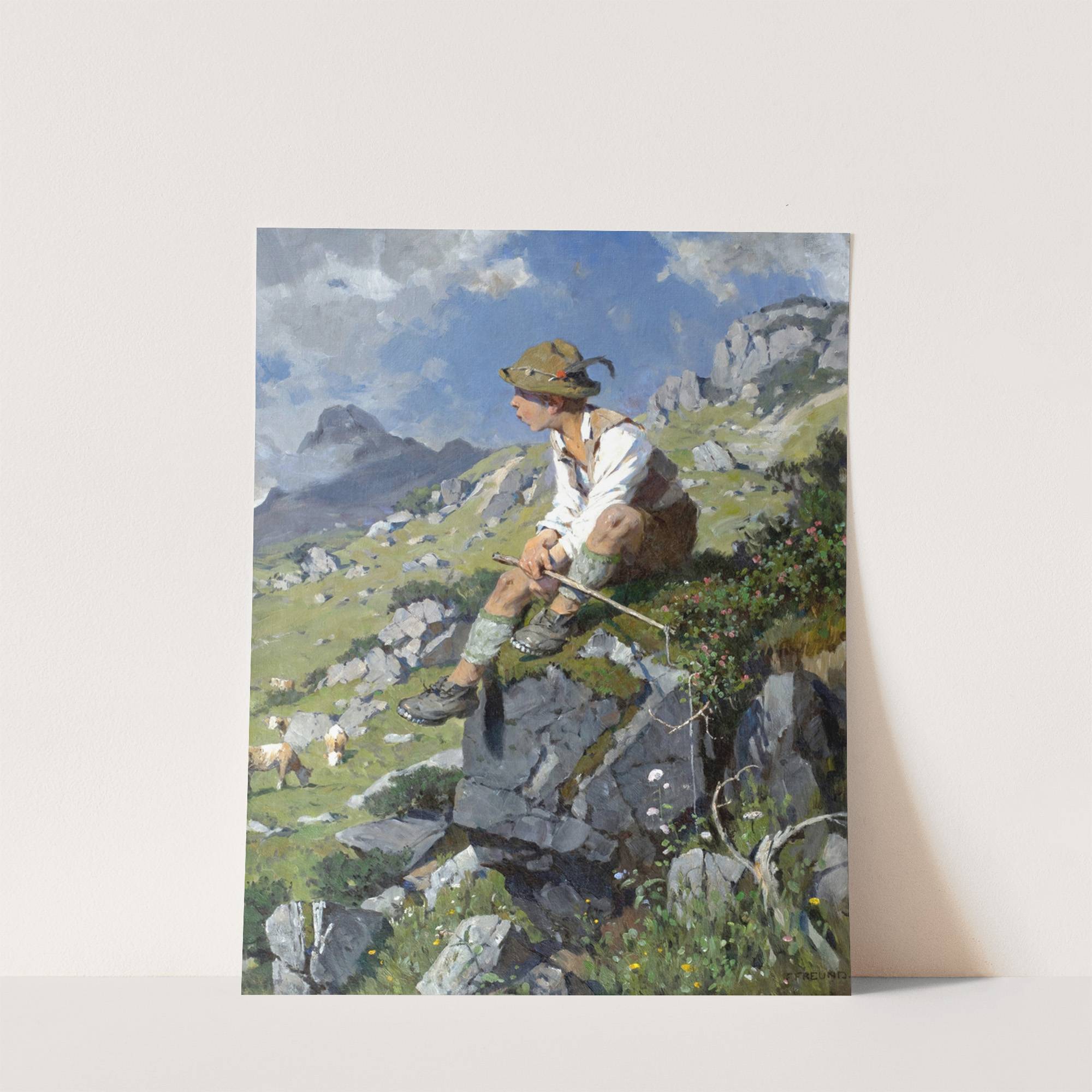 Hütebub im bayerischen Gebirge by Fritz Freund - Wall Art Print