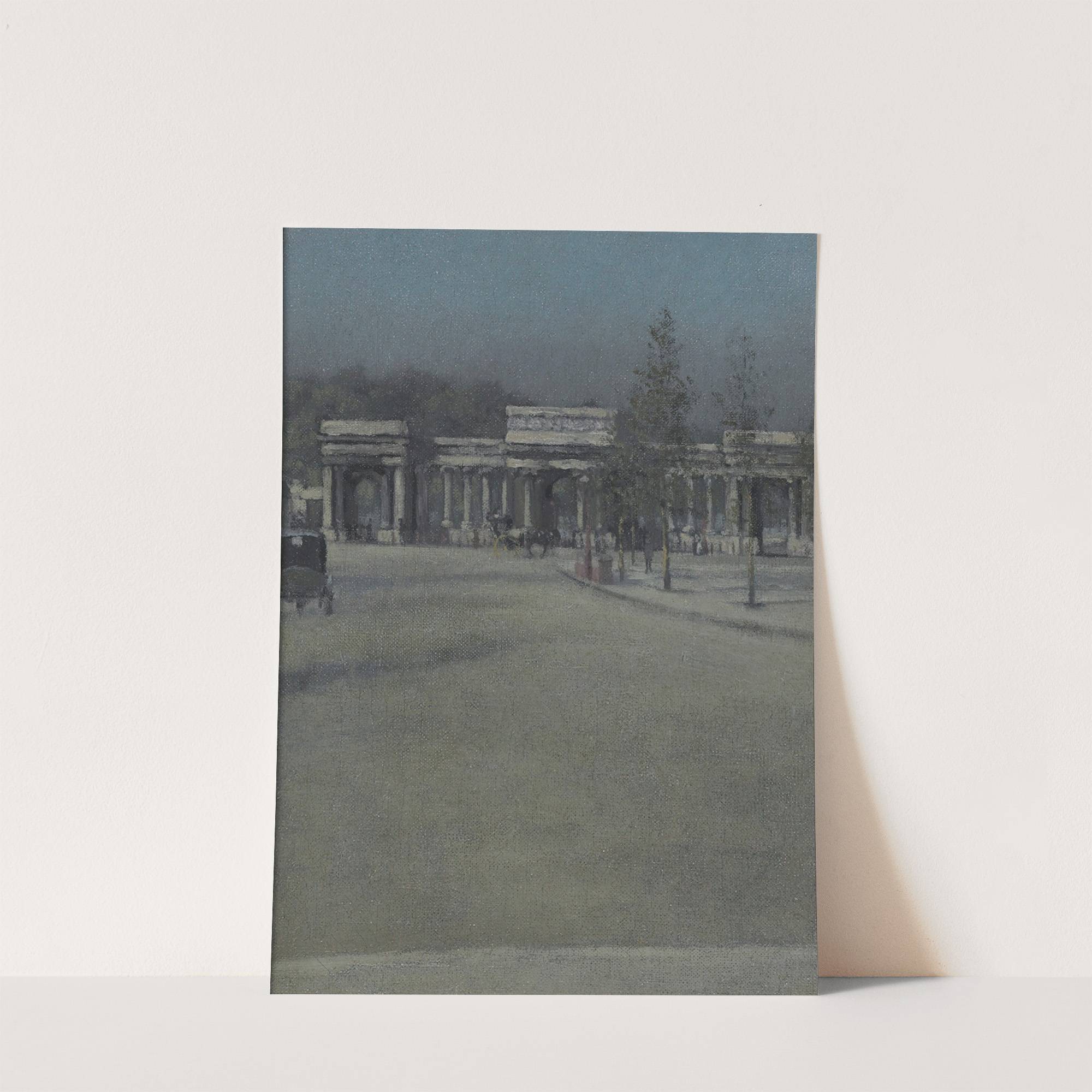 This stunning art print features "Hyde Park Gate" by Paul Fordyce Maitland, capturing the tranquil essence of an ancient architectural site. The artwork employs a textured, almost mosaic-like finish that enhances the historical and timeless quality of the scene. The...