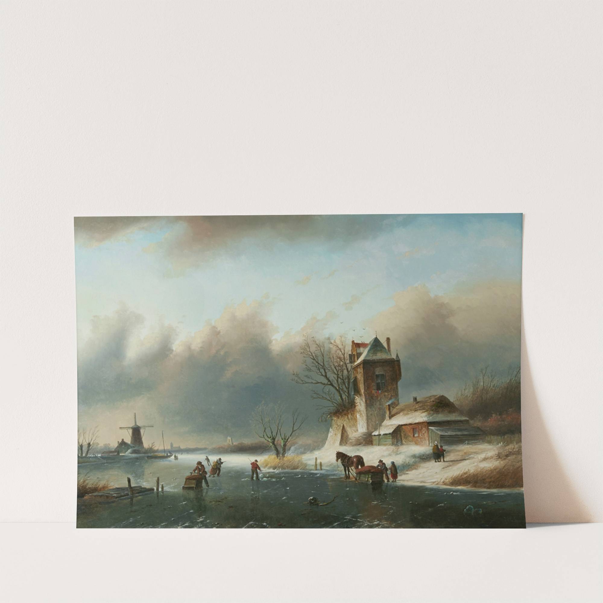 Ice skaters on a canal by Jan Jacob Coenraad Spohler - Wall Art Print