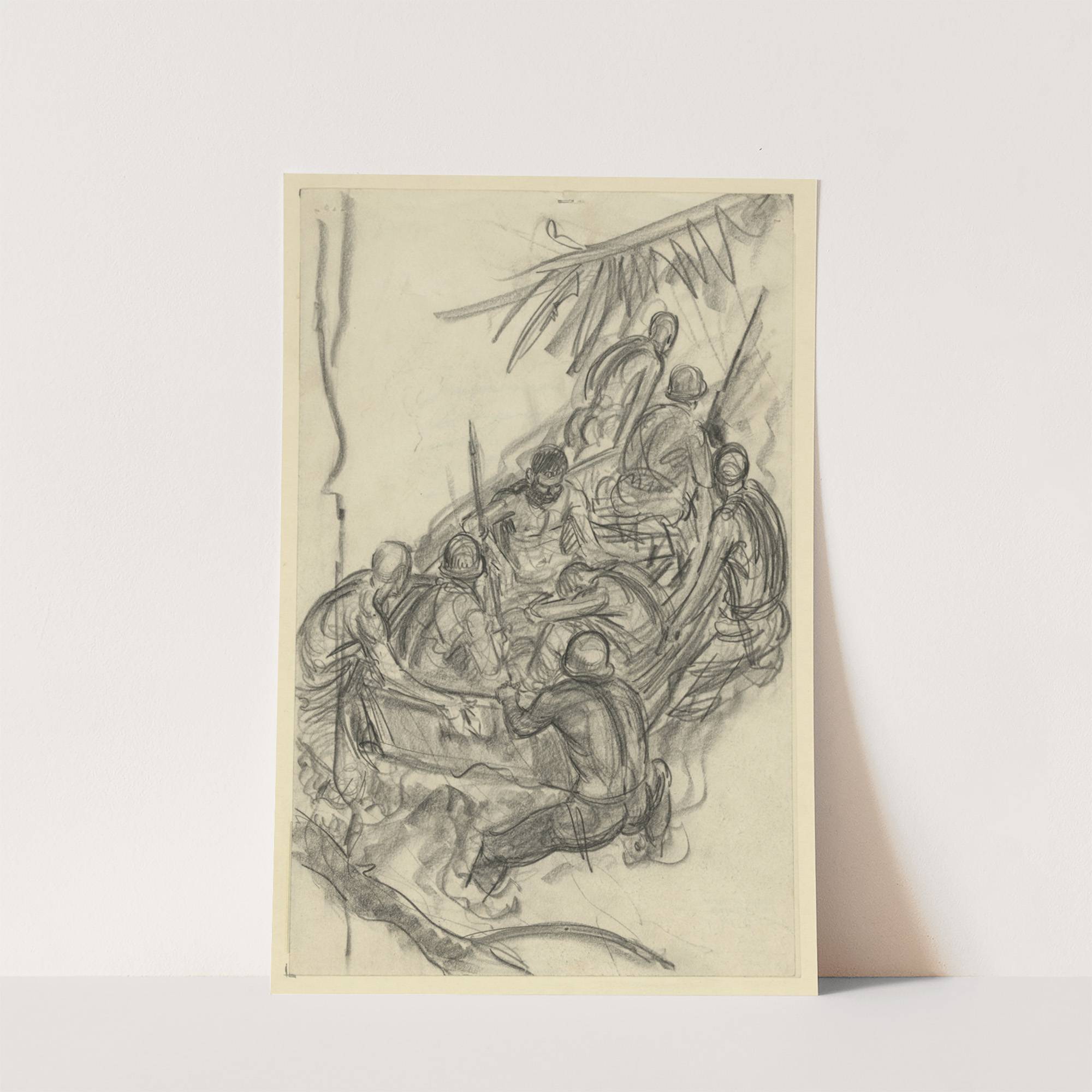 Impression bringing wounded down the Matanakau [e.g. Mataniko River] – Guadalcanal by Howard Brodie - Wall Art Print