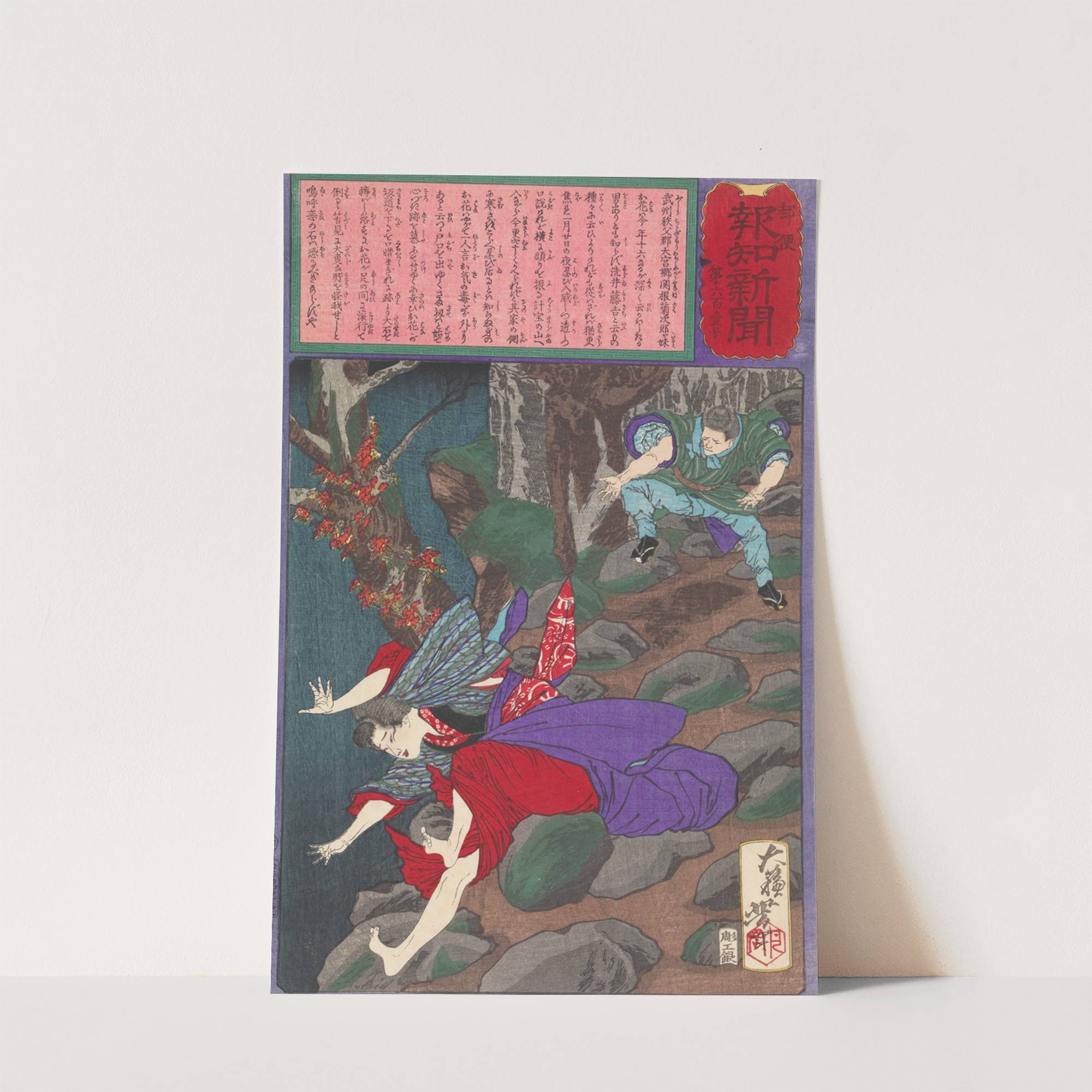 In a Fit of Jealousy Arai Tōkichi Hurls a Rock at Ohana by Tsukioka Yoshitoshi - Wall Art Print
