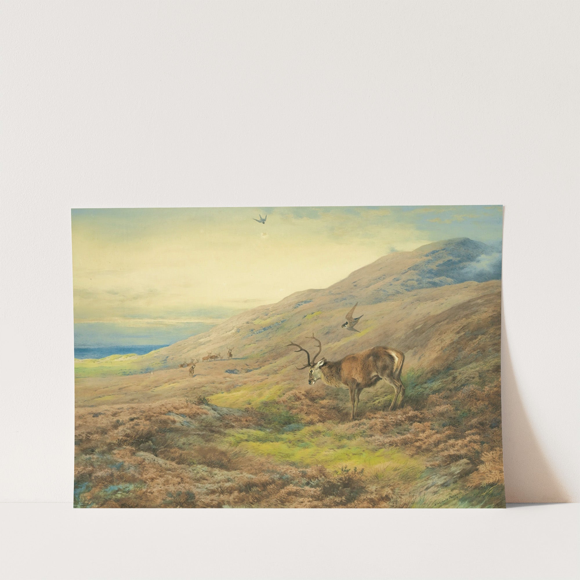 In The Highlands, Red Stag Mobbed By A Pair Of Peregrines (1917) by Archibald Thorburn - Wall Art Print