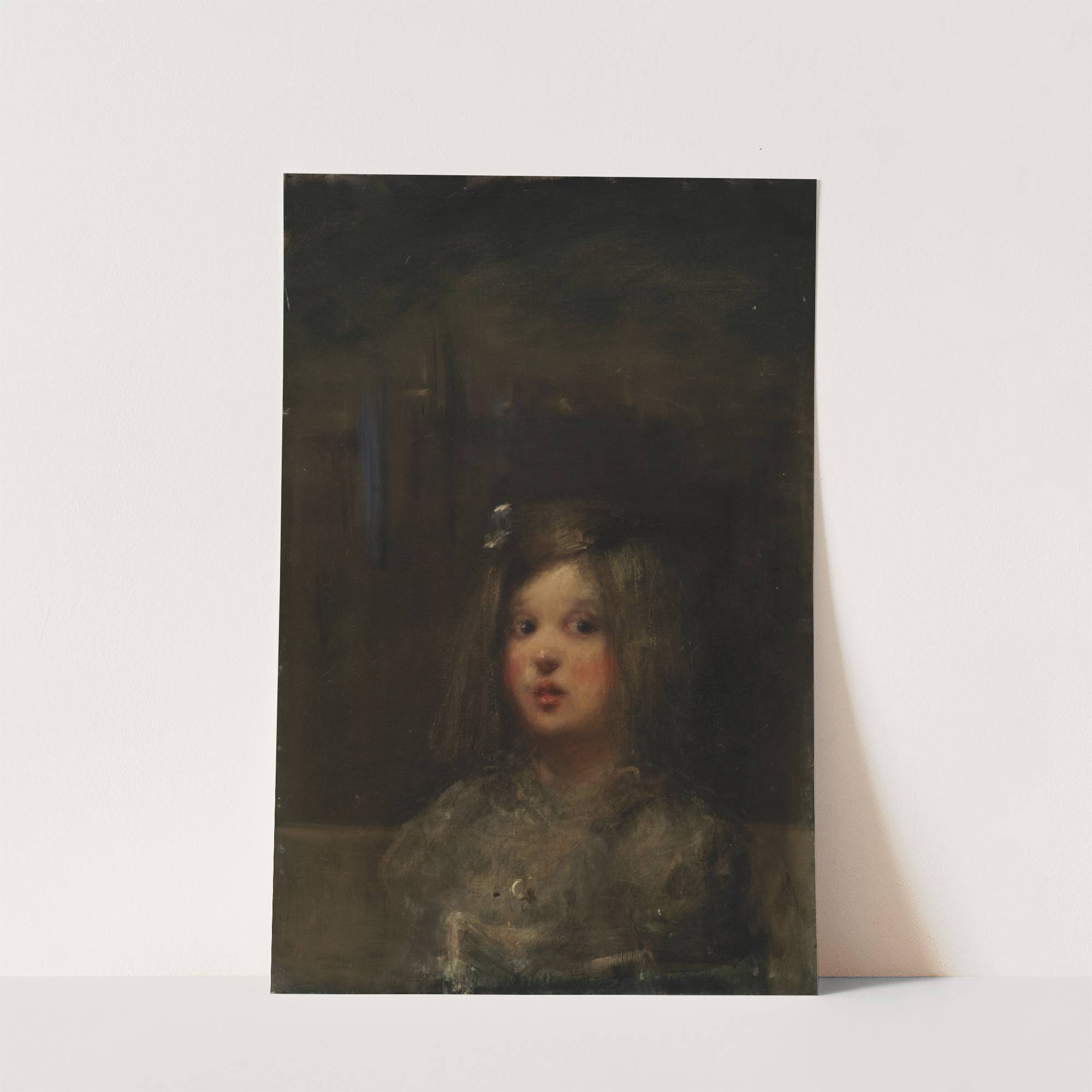 This captivating oil painting titled "Infanta" by Alice Pike Barney showcases a beautifully rendered portrait of a young girl against a dark, almost black background. The artist uses rich, deep hues to bring out the softness and innocence of the...
