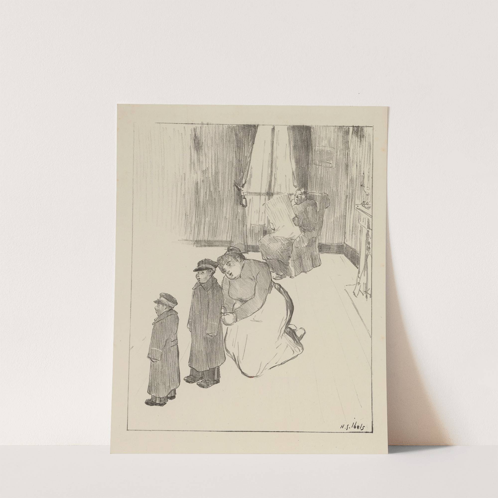 Intérieur avec homme lisant son journal, femme agenouillée auprès de deux garçonnets (1895) by Henri-Gabriel Ibels - Wall Art Print
