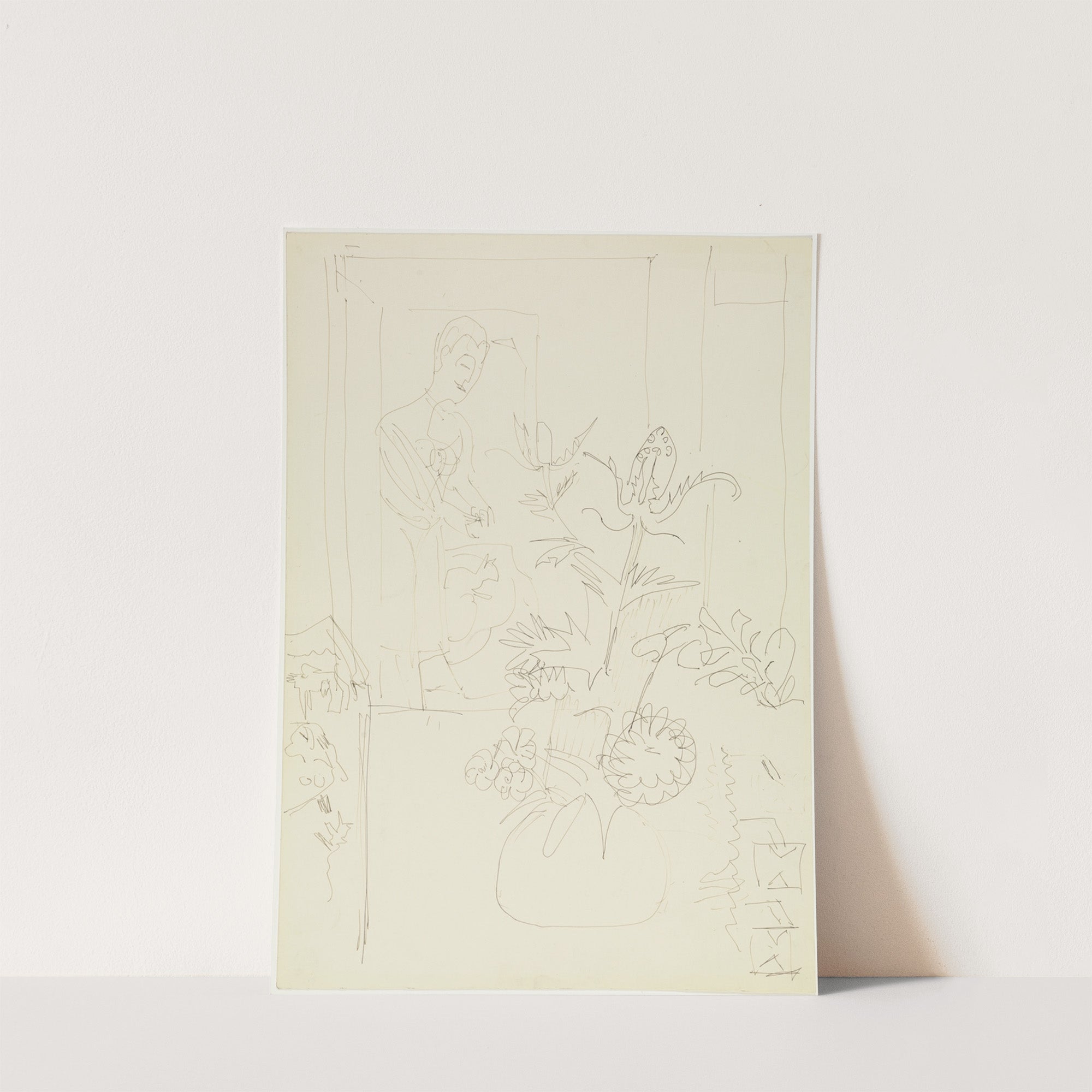 Interieur mit Blumenvase, Frau und Katze (ca 1934) by Ernst Ludwig Kirchner - Wall Art Print