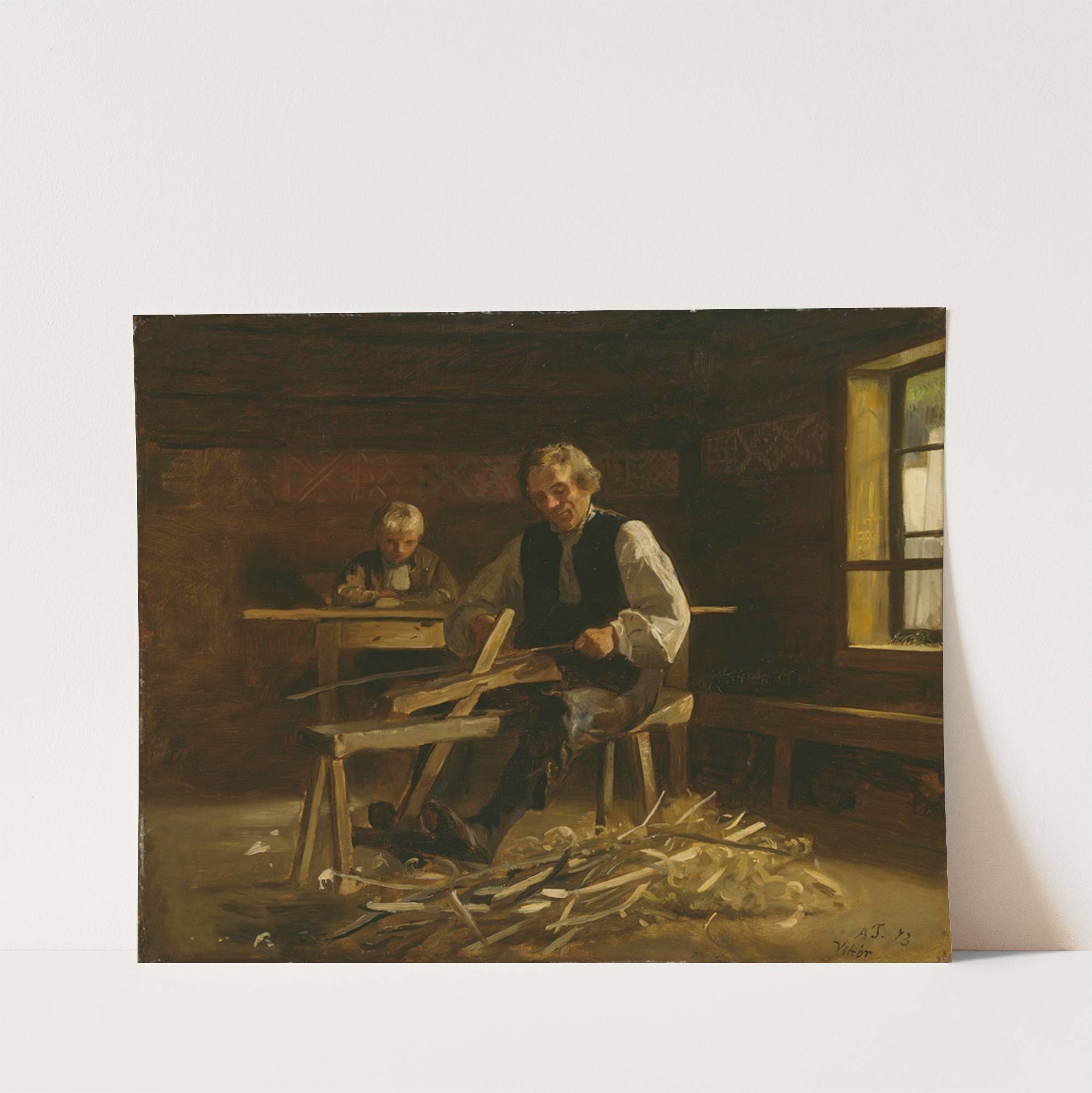 Interior from Vikøy with Farmer making Barrel Hoops (1873)