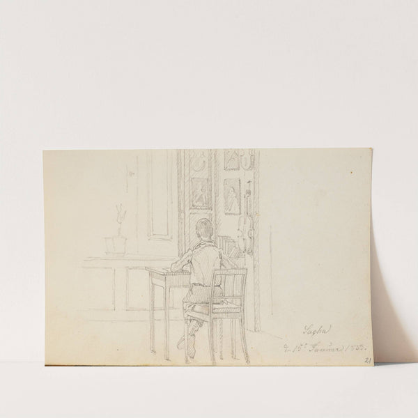 Interiør med siddende dreng, set fra ryggen by Martinus Rørbye - Wall Art Print