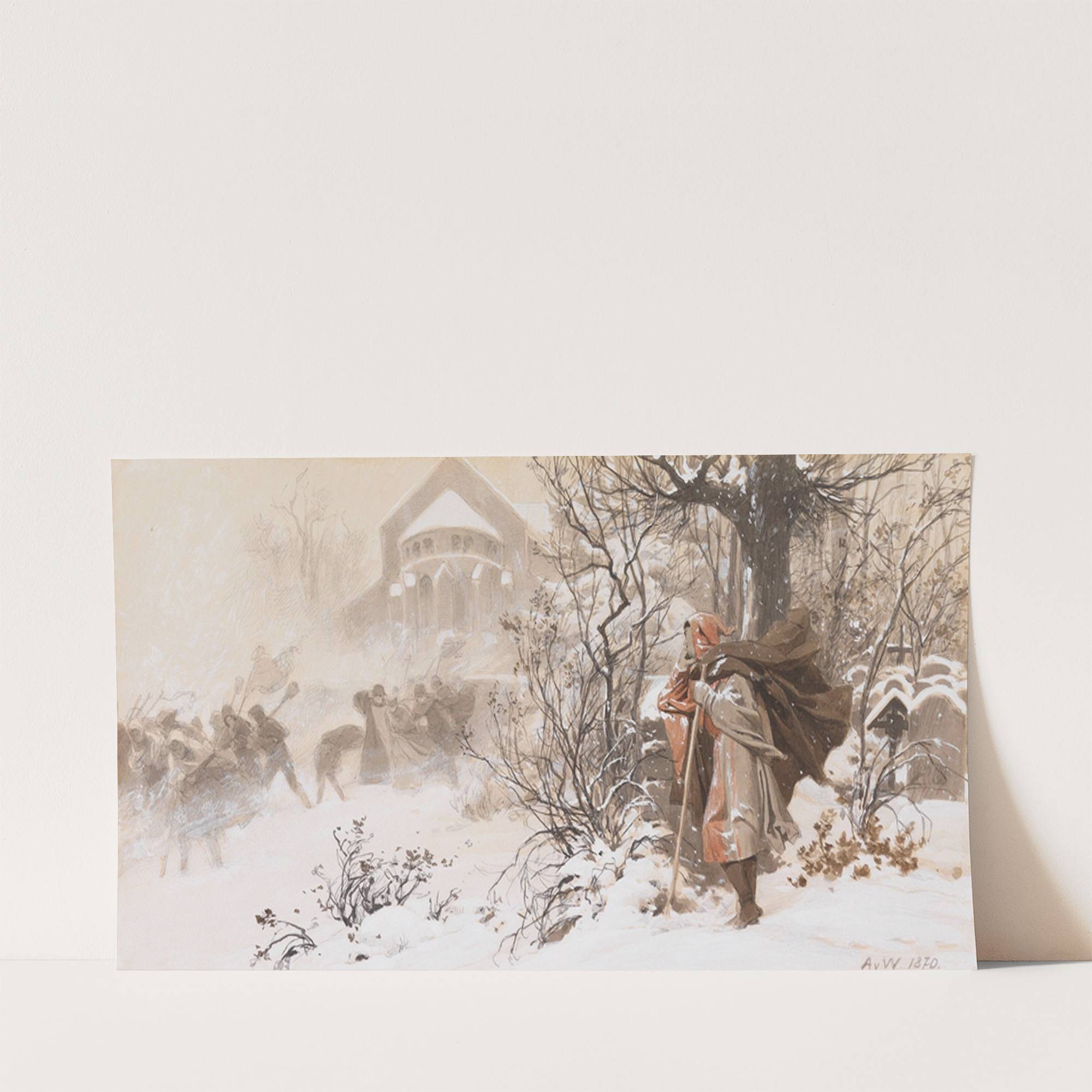 Irregang (Schneesturm im Kirchhof) (1870.) by Anton von Werner - Wall Art Print