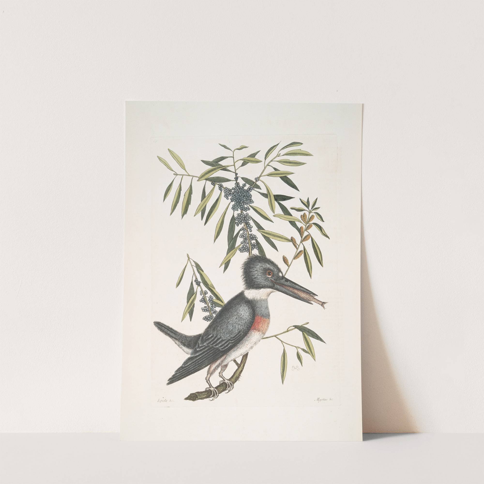 Ispida &c., The King-Fisher; Myrtus &c., The narrow-leaved Candle-berry Myrtle. by Mark Catesby - Wall Art Print