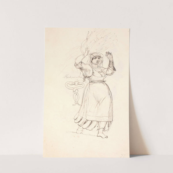 Italiensk bondekone med et knippe kvas på hovedet. Studie af en hank forestillende to slanger som bider hinanden i hovedet by Johan Thomas Lundbye - Wall Art Print