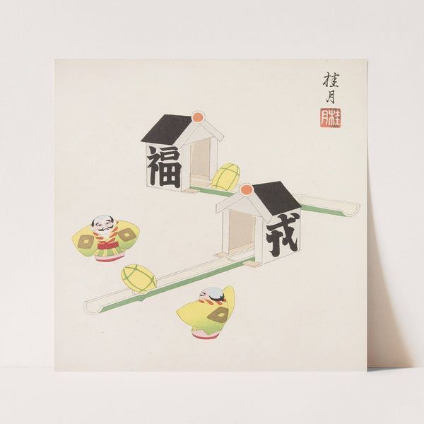 Japanese Folk Toys (Kyōdo gangu shū ; haru) Pl.07 by Yamashita Hakuba - Wall Art Print
