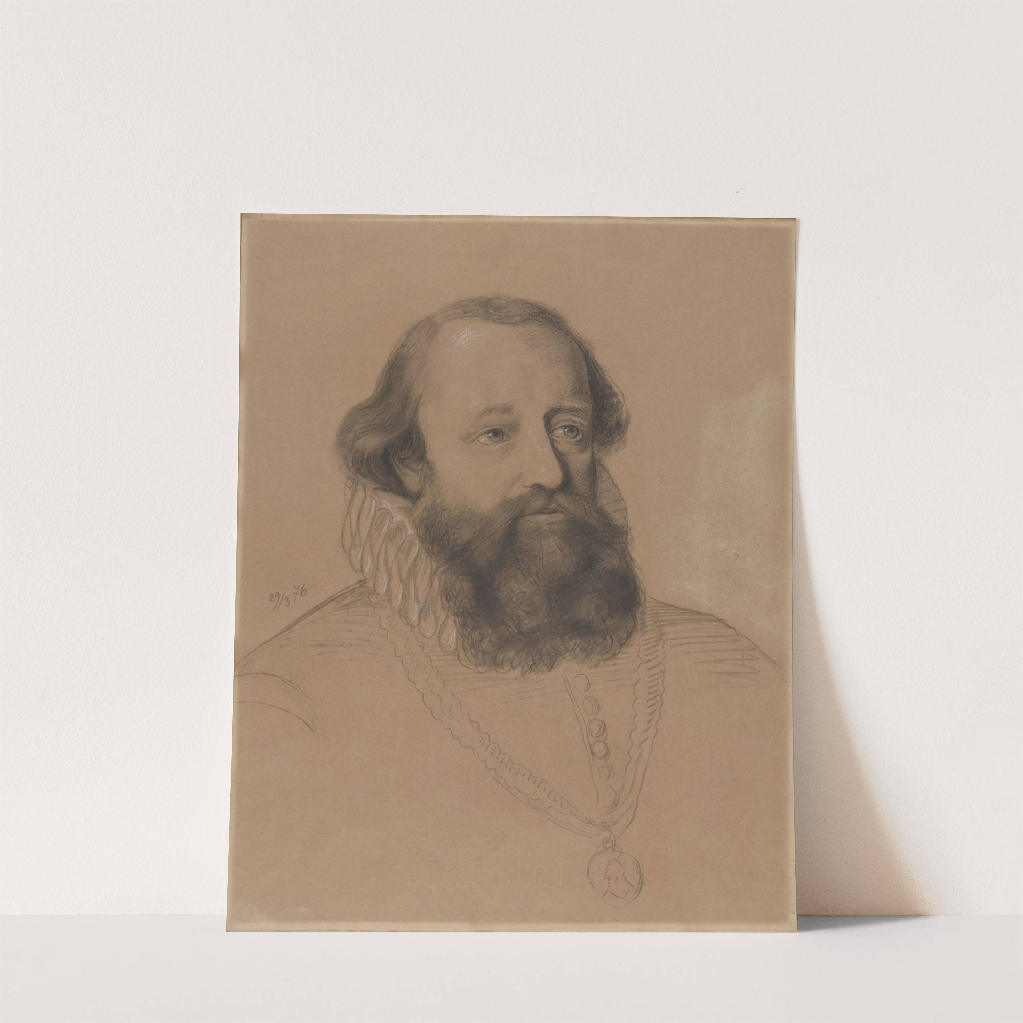 This captivating artwork is a sepia-toned pencil drawing of a distinguished bearded man by artist Jens Juel, as depicted in the style of Adolph Tidemand from 1878. The subject gazes softly yet thoughtfully at the viewer with calm, contemplative eyes...