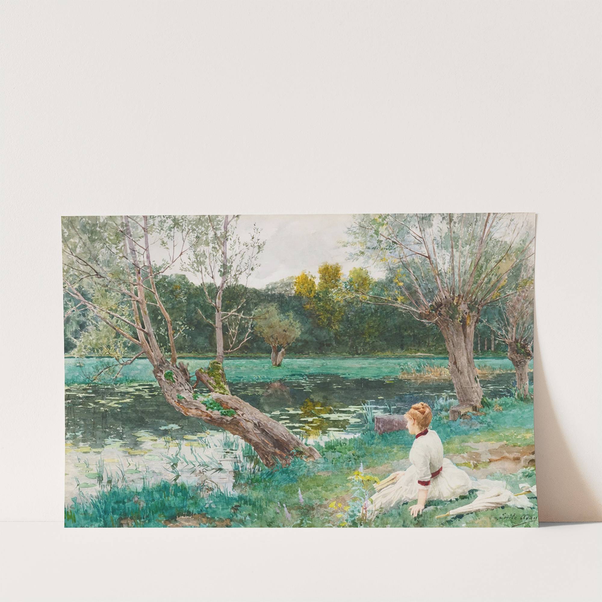 Jeune Fille Au Bord De L’étang by Louis Emile Adan - Wall Art Print
