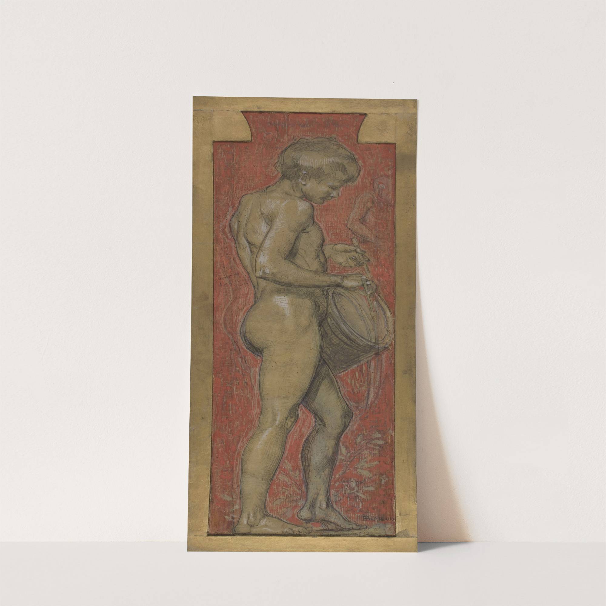 Jeune garçon nu jouant du tambour by Hippolyte Dominique Berteaux - Wall Art Print