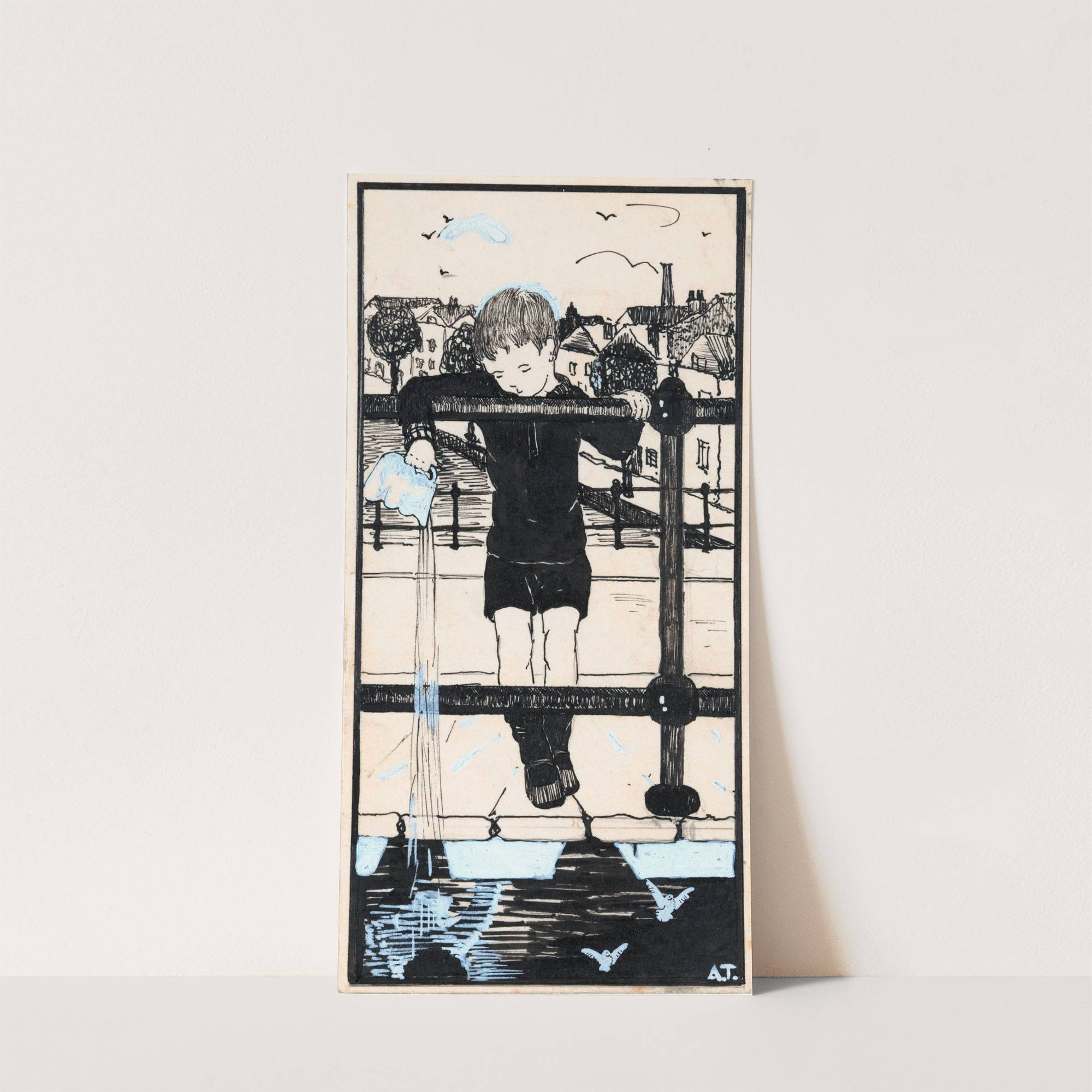 Jongen gooit kan leeg in gracht by A. Tinbergen - Wall Art Print