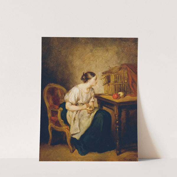 Junge Frau mit Vogelkäfig by Octave Tassaert - Wall Art Print