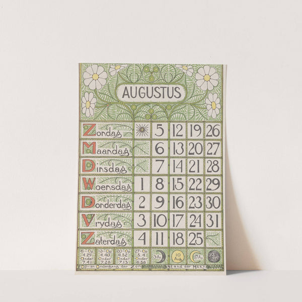 Kalenderblad augustus 1900 by Theo Nieuwenhuis  - Wall Art Print