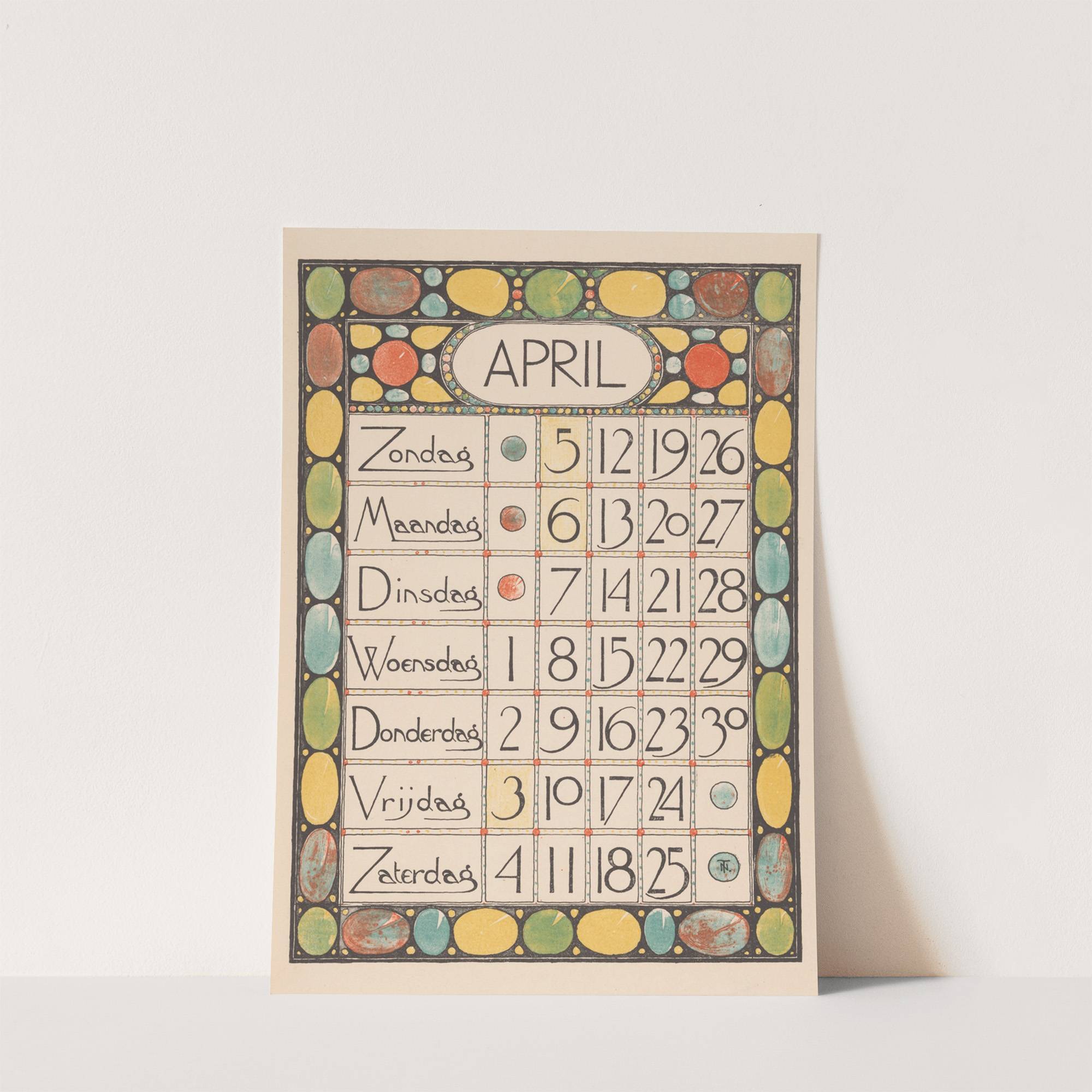 Kalenderblad voor april 1896 by Theo Nieuwenhuis  - Wall Art Print