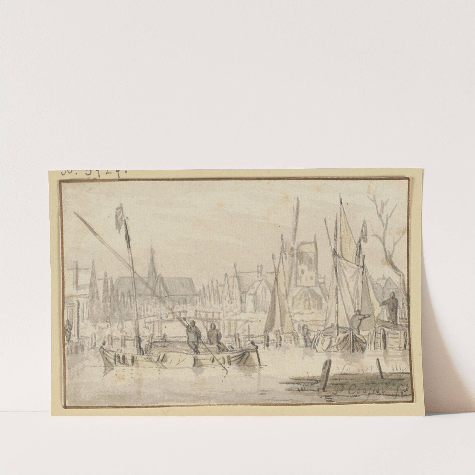 Kanal bei einer Stadt mit Schiffen belebt by Pieter Coopse - Wall Art Print