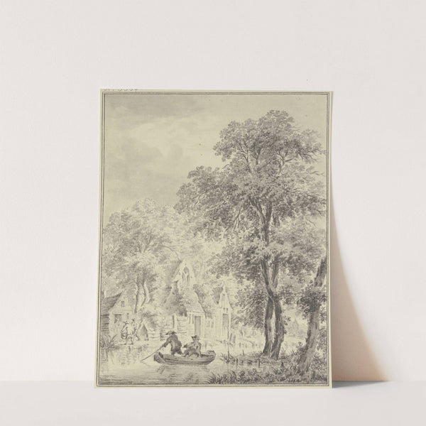 Kanal bei Häusern im Wald, vorne ein Boot mit drei Männern by Paulus van Liender - Wall Art Print