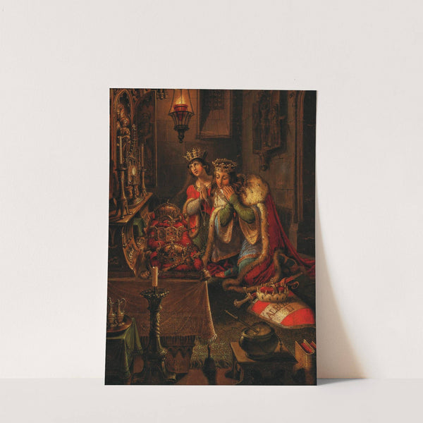 King Albert II and His Wife Elizabeth of Luxembourg in Prayer, on the Altar the Crowns of Bohemia and Hungary, as well as the Imperial Crown of the Holy Roman Empire by Karl Russ - Wall Art Print