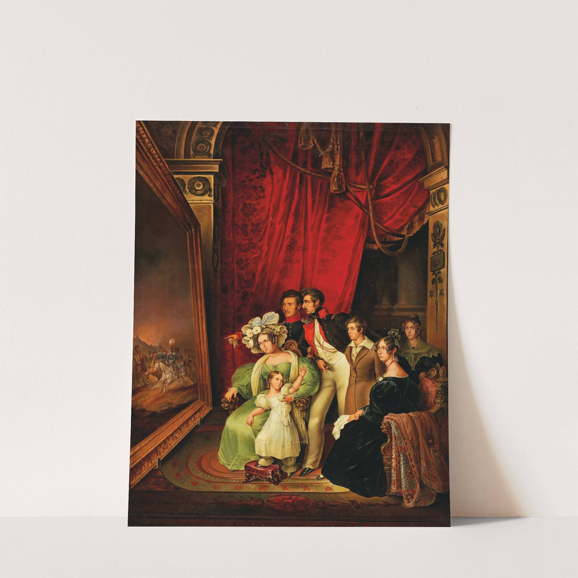 King Ludwig I of Bavaria with his Family, jointly examining the painting ‘Entry of King Otto of Greece into Napflio’ by Peter von Hess, 1835 by Eugène Delacroix - Wall Art Print