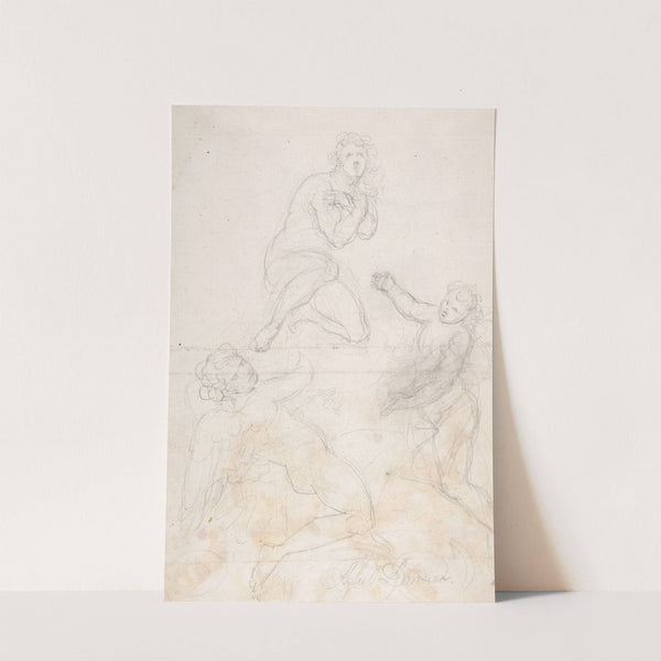 Kneeling Female Nude and Two Studies of Angels by Georg Raphael Donner - Wall Art Print