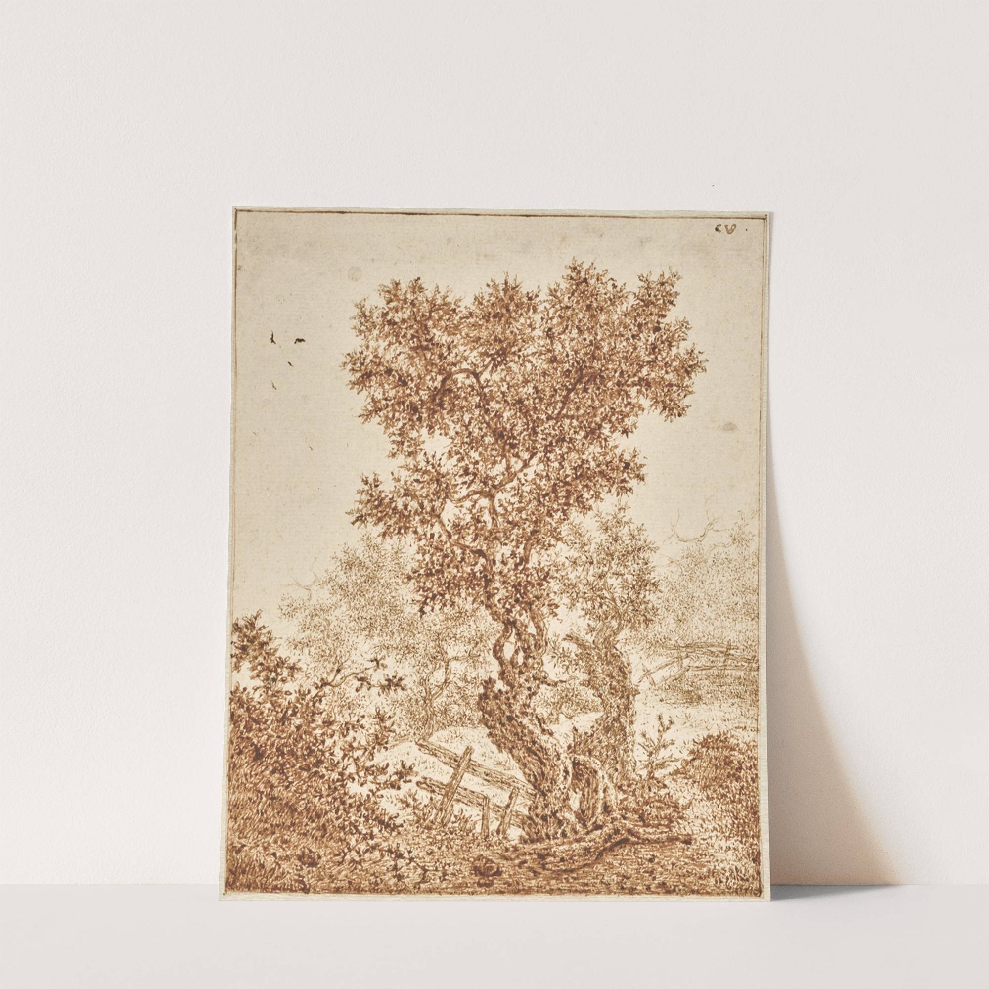 Knotty Old Tree in the Dunes with a Fence by Claes van Beresteyn - Wall Art Print