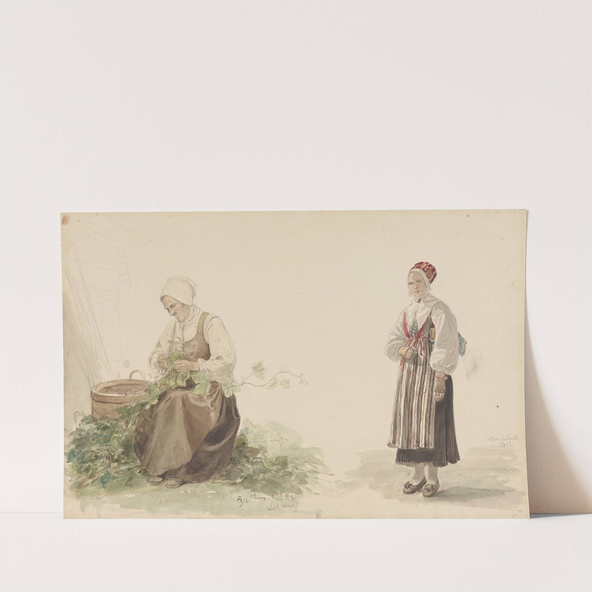 Kone som plukker ekeblader og Kari Andersdatter (1852)