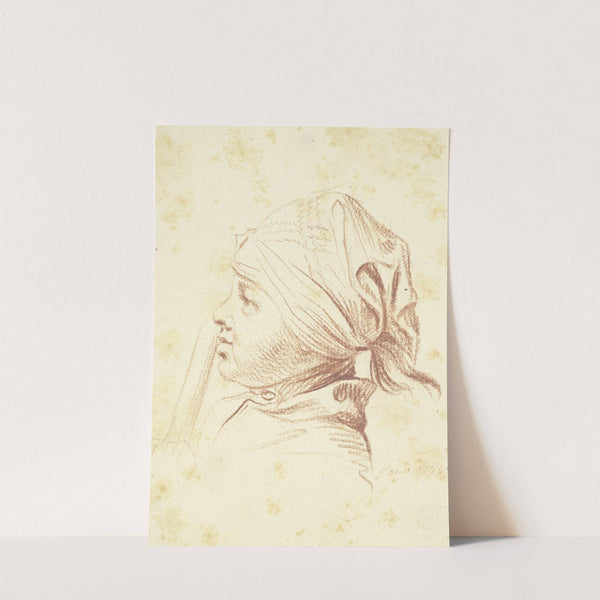 Kopf eines jungen Mannes mit Kopftuch, einen Stab an den Mund haltend, im Profil nach by Daniel Nikolaus Chodowiecki - Wall Art Print