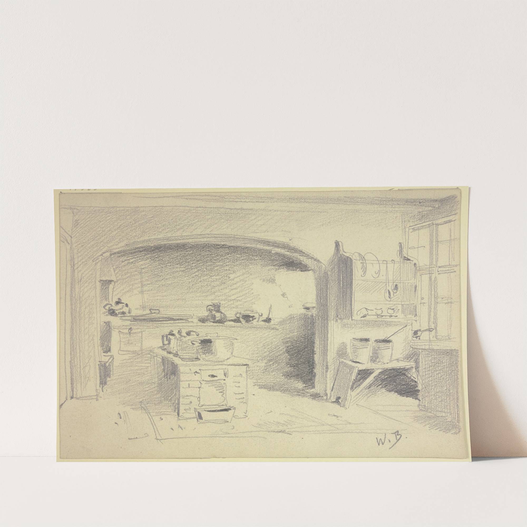 Küche mit Herd, Regal und Mauerbogen by Wilhelm Busch - Wall Art Print