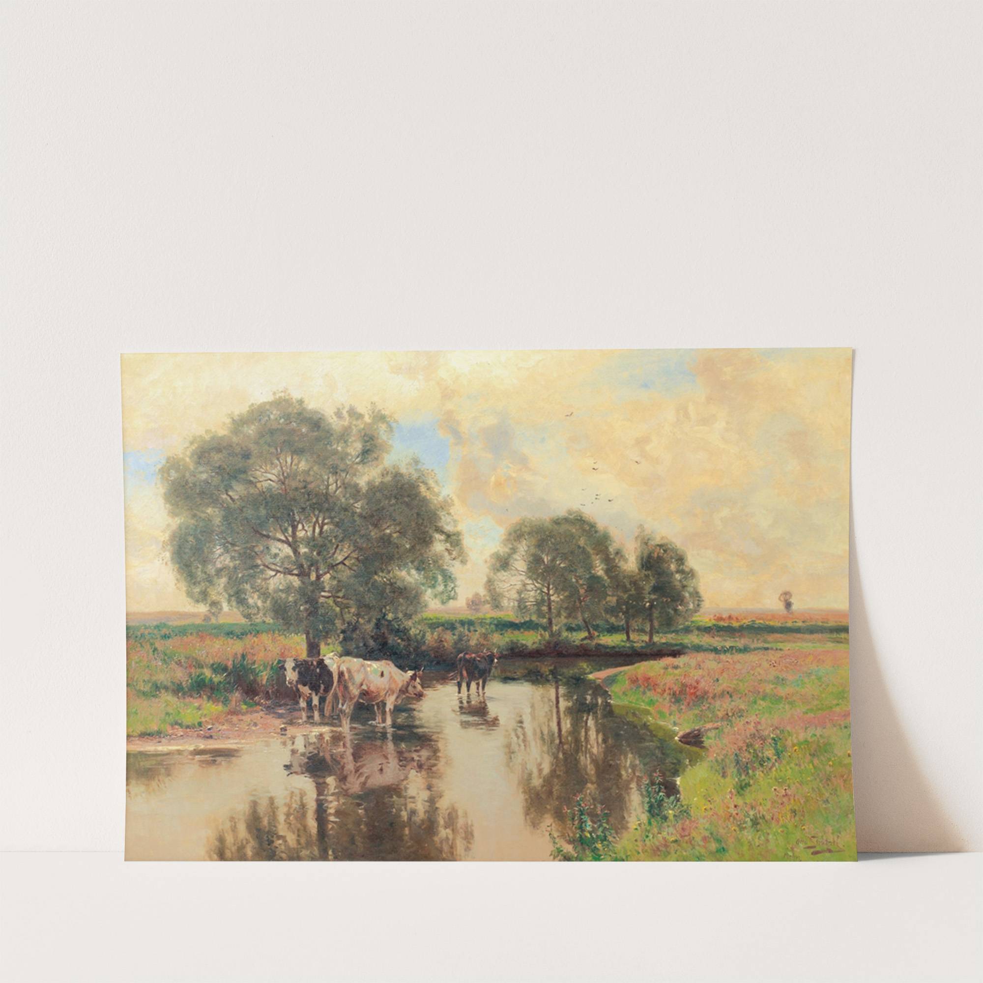 Kühe am Bachufer by Otto Strützel - Wall Art Print