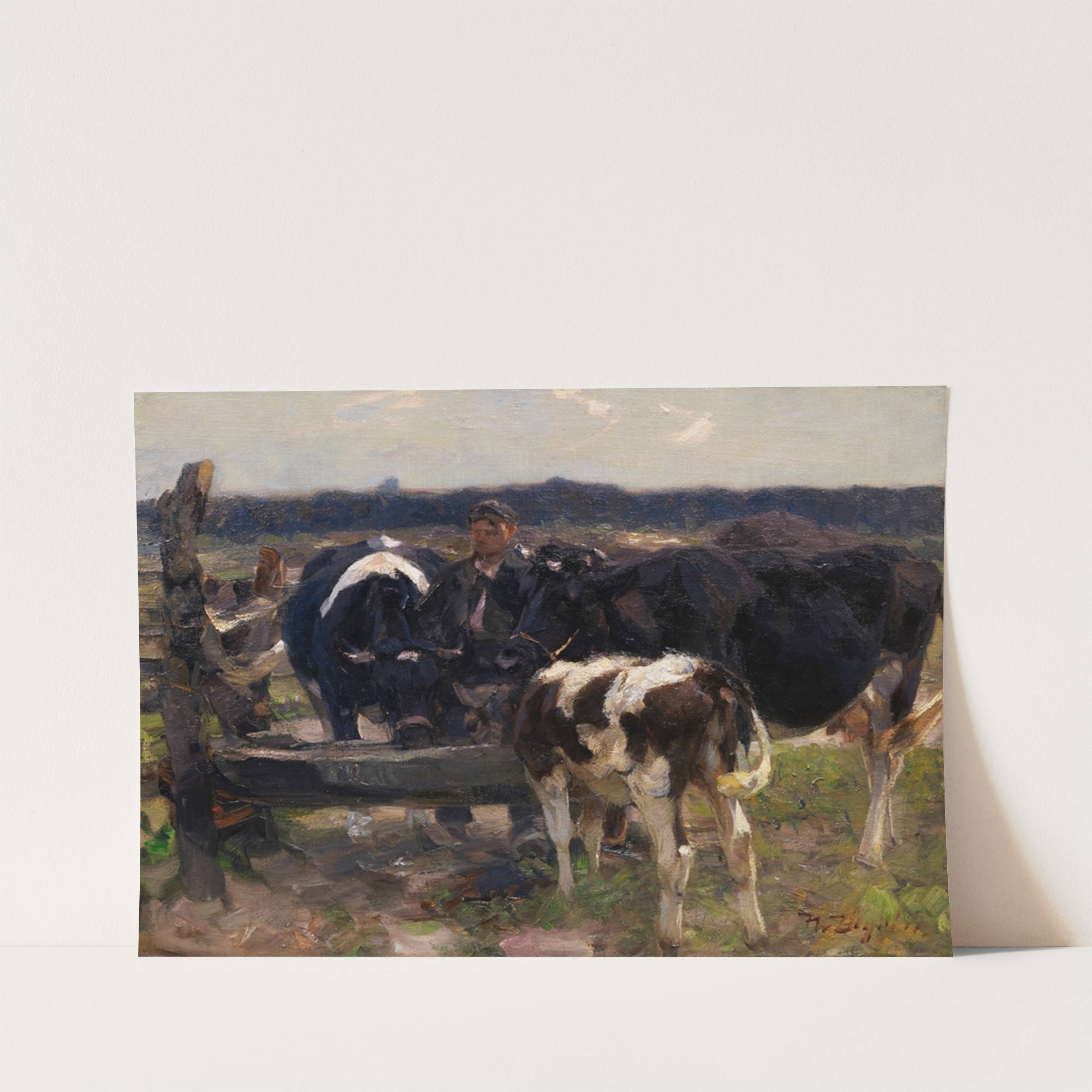 Kühe und Hirte an der Tränke (1911) by Heinrich Von Zügel - Wall Art Print