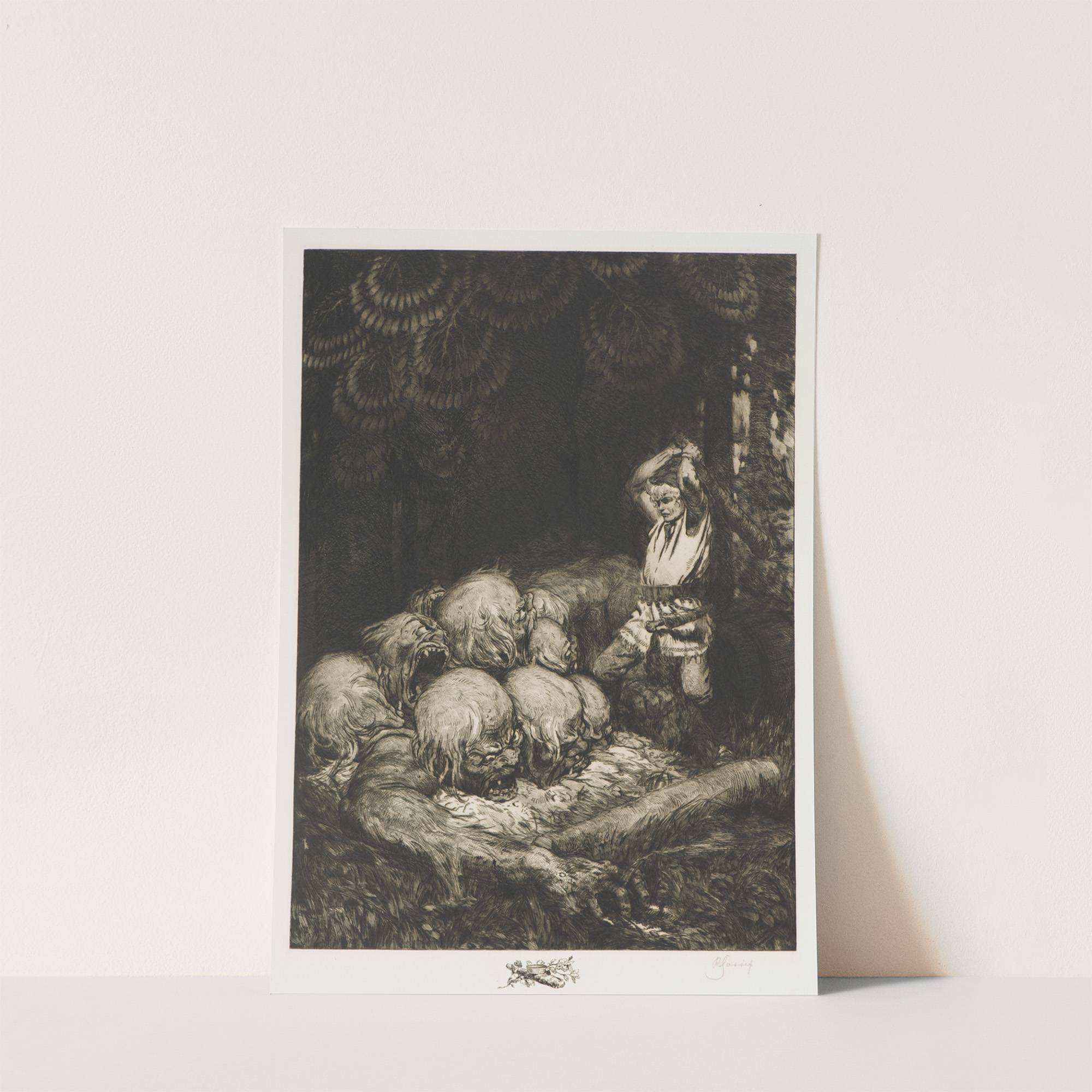 Kurbads the Hero and nine headed devil by Rihards Zariņš - Wall Art Print