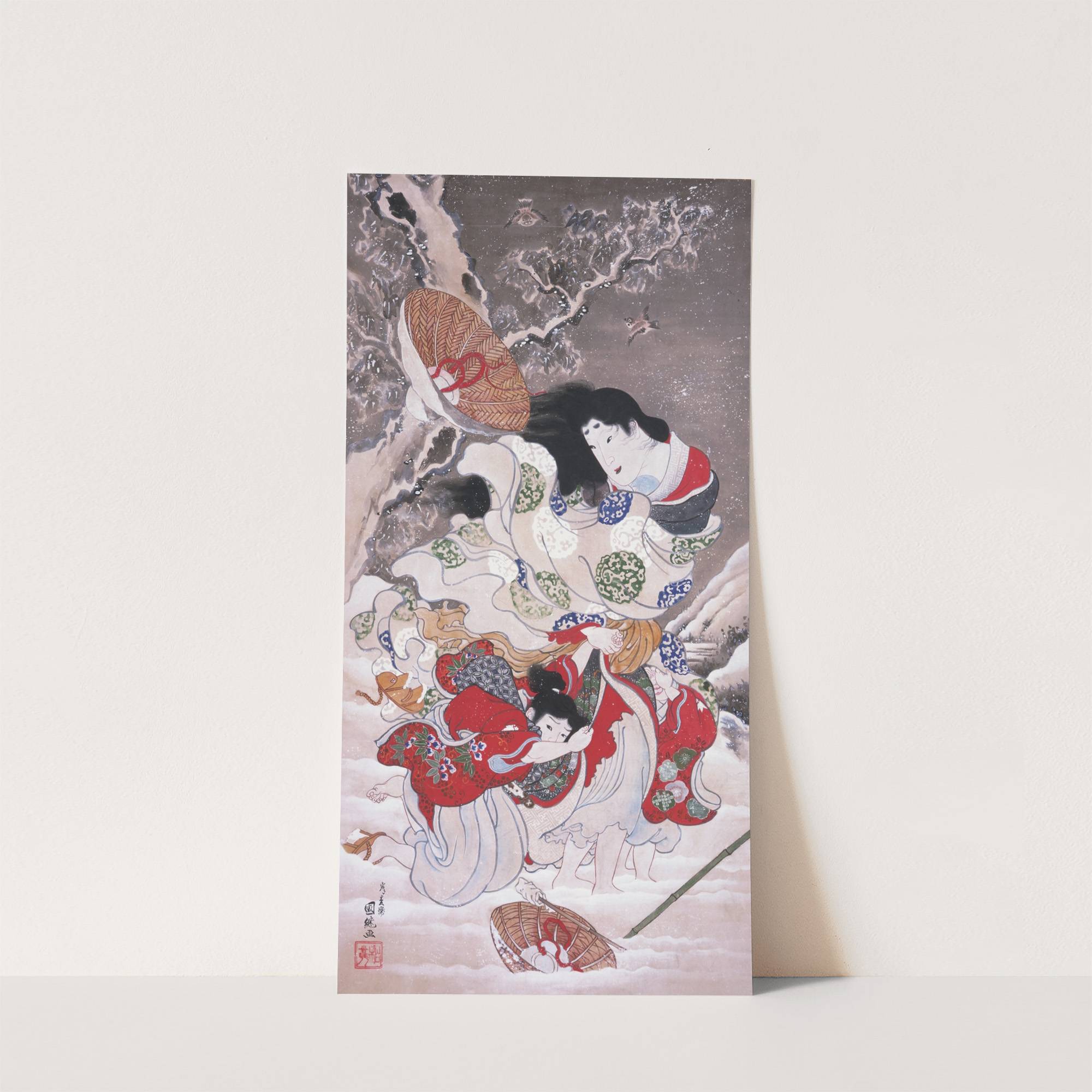 Lady Tokiwa Fleeing with Children by Utagawa Kunitsugu - Wall Art Print