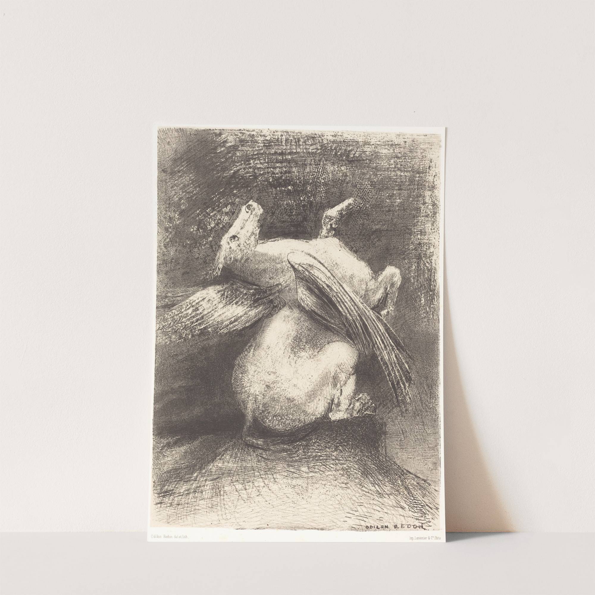 L’Aile impuissante n’eleva point la bete en ces noirs espaces (The impotent wing did not lift the animal into that black space by Odilon Redon - Wall Art Print