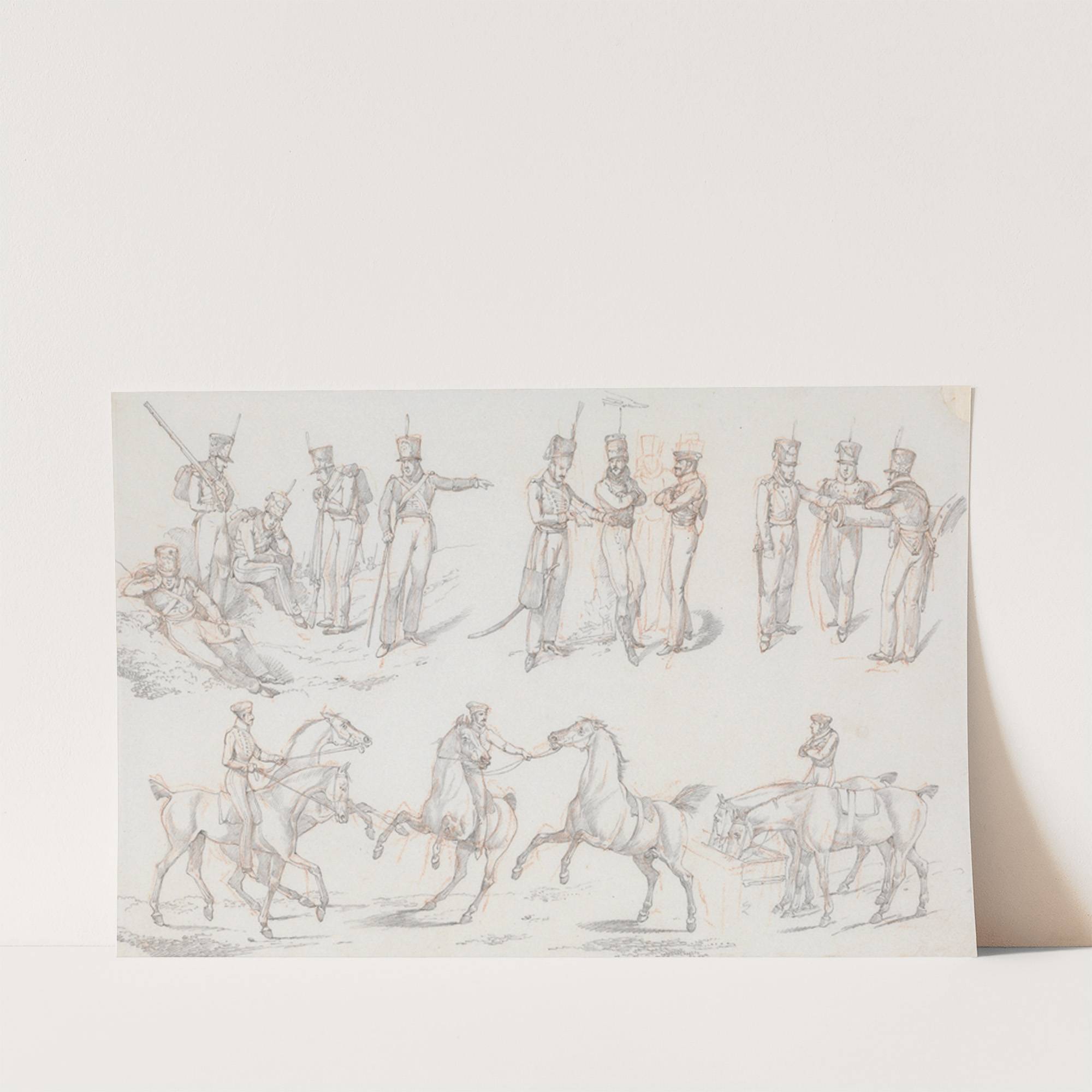 ‘Landscape Scenery’, No. 13: Groups of Infantry and Army Horses by Henry Thomas Alken - Wall Art Print