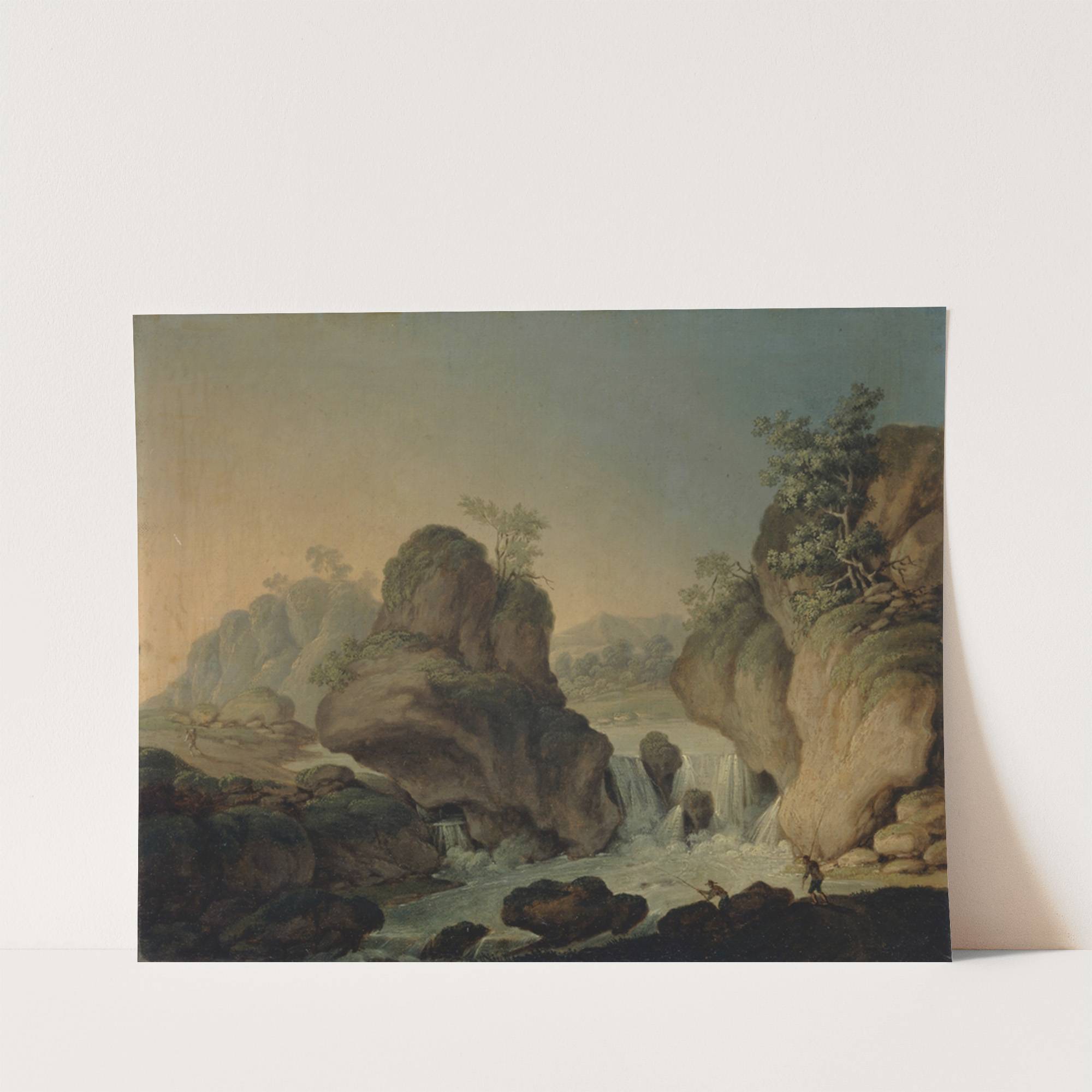 Landscape with Waterfall and Fishermen by Johann Nepomuk Wocher - Wall Art Print
