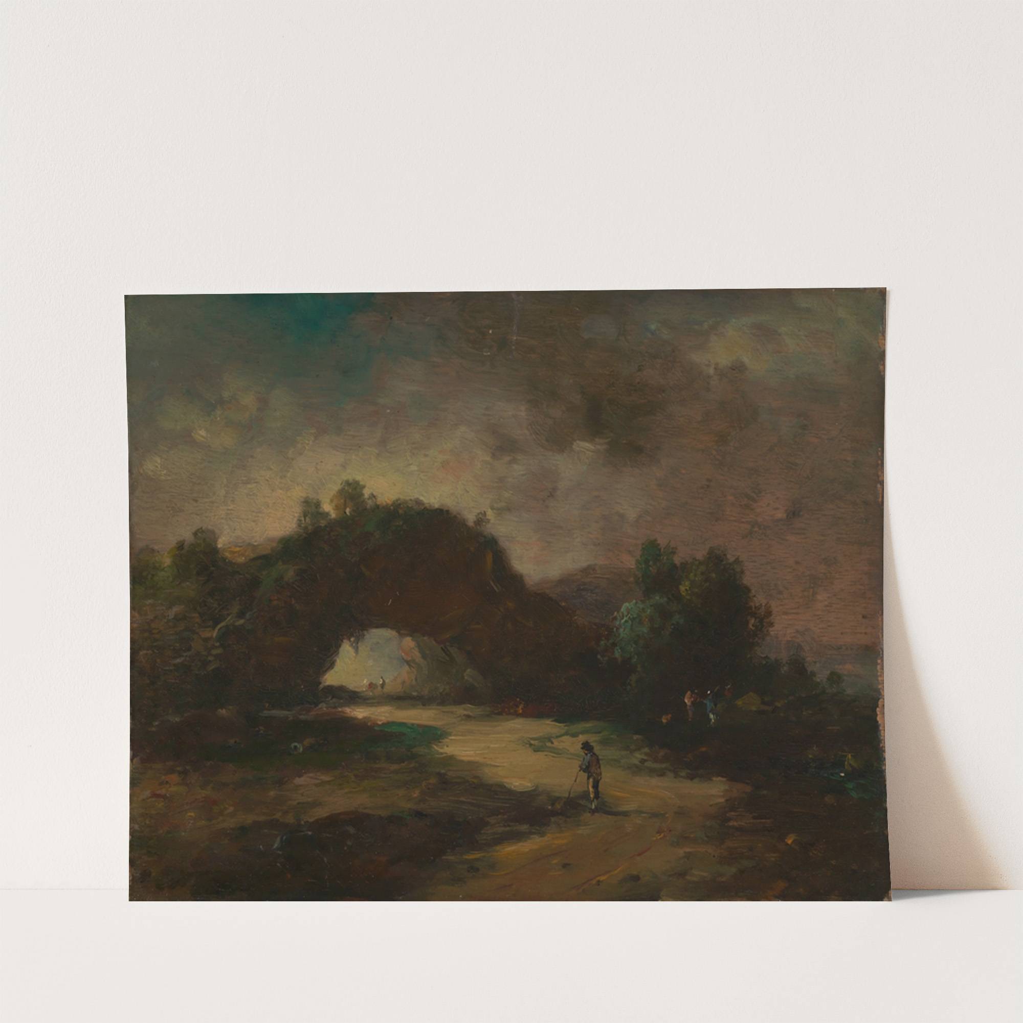 Landschaft mit einem von Buschwerk überwachsenen Felsenbogen by Christian Wilhelm Ernst Dietrich - Wall Art Print