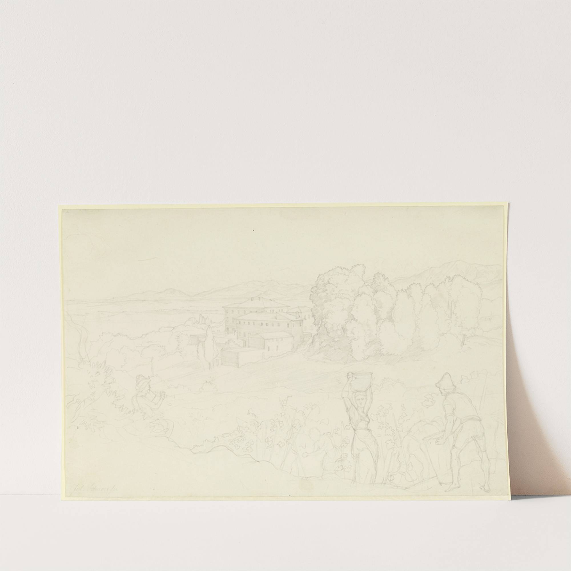 Landschaft mit einer Villa, rechts vorne Winzer, links ein Hirte, der die Flöte bläst by Julius Schnorr Von Carolsfeld - Wall Art Print