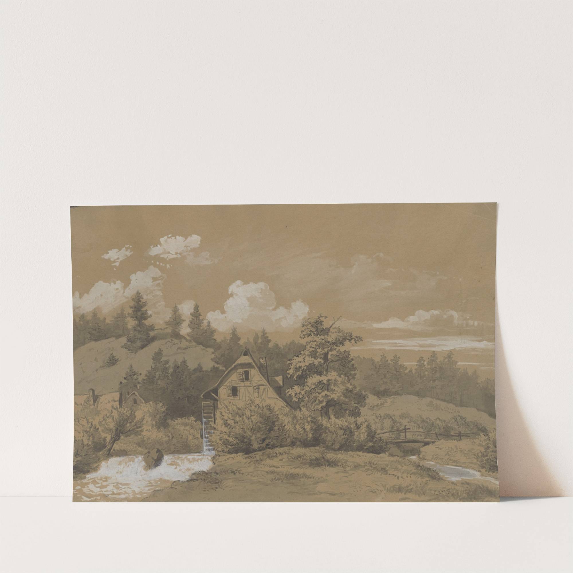 Landschaft mit Fachwerkhaus und Kaskade by Karl Roux - Wall Art Print