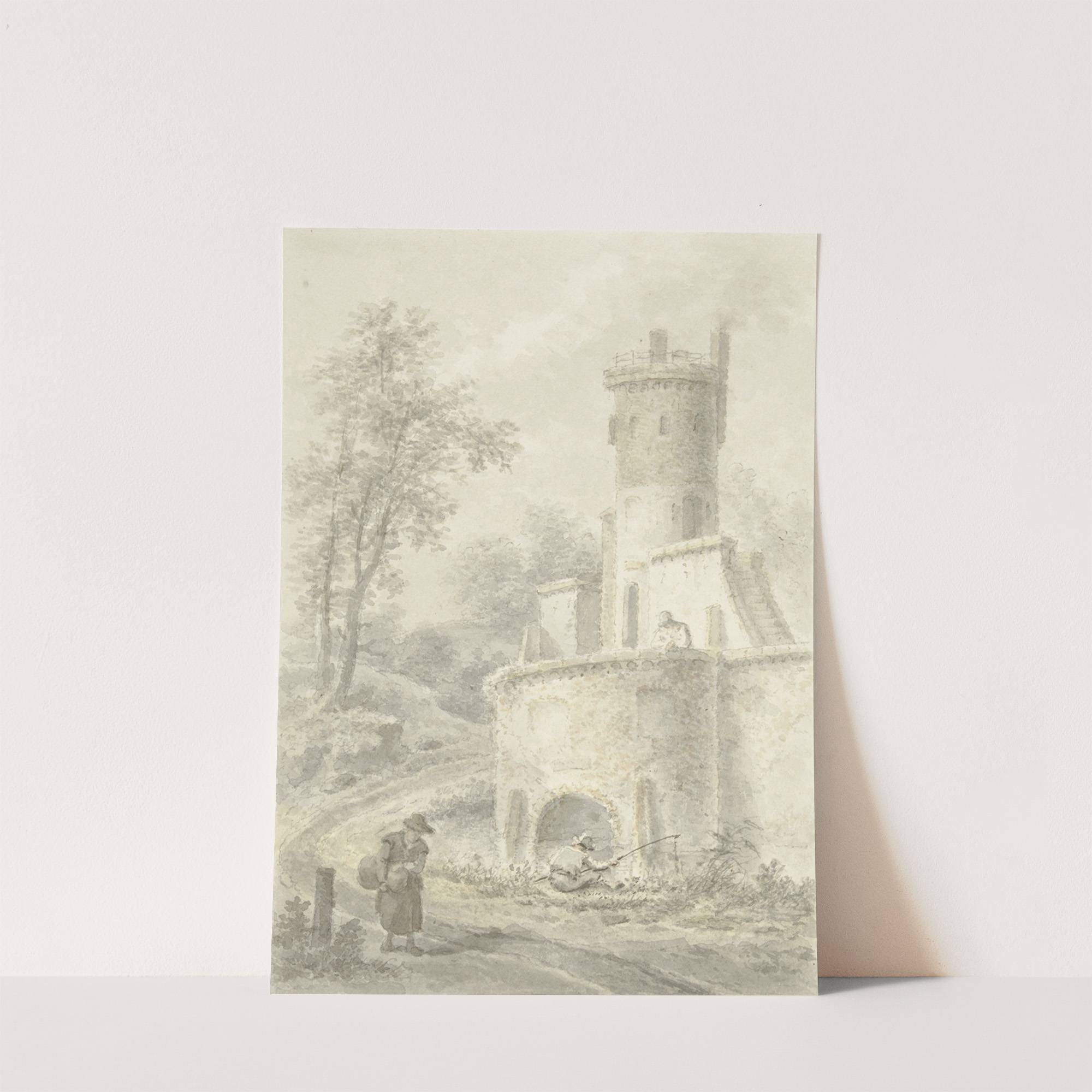 Landschap met hengelaar en wandelende vrouw bij een vestingtoren by Pieter Bartholomeusz. Barbiers - Wall Art Print