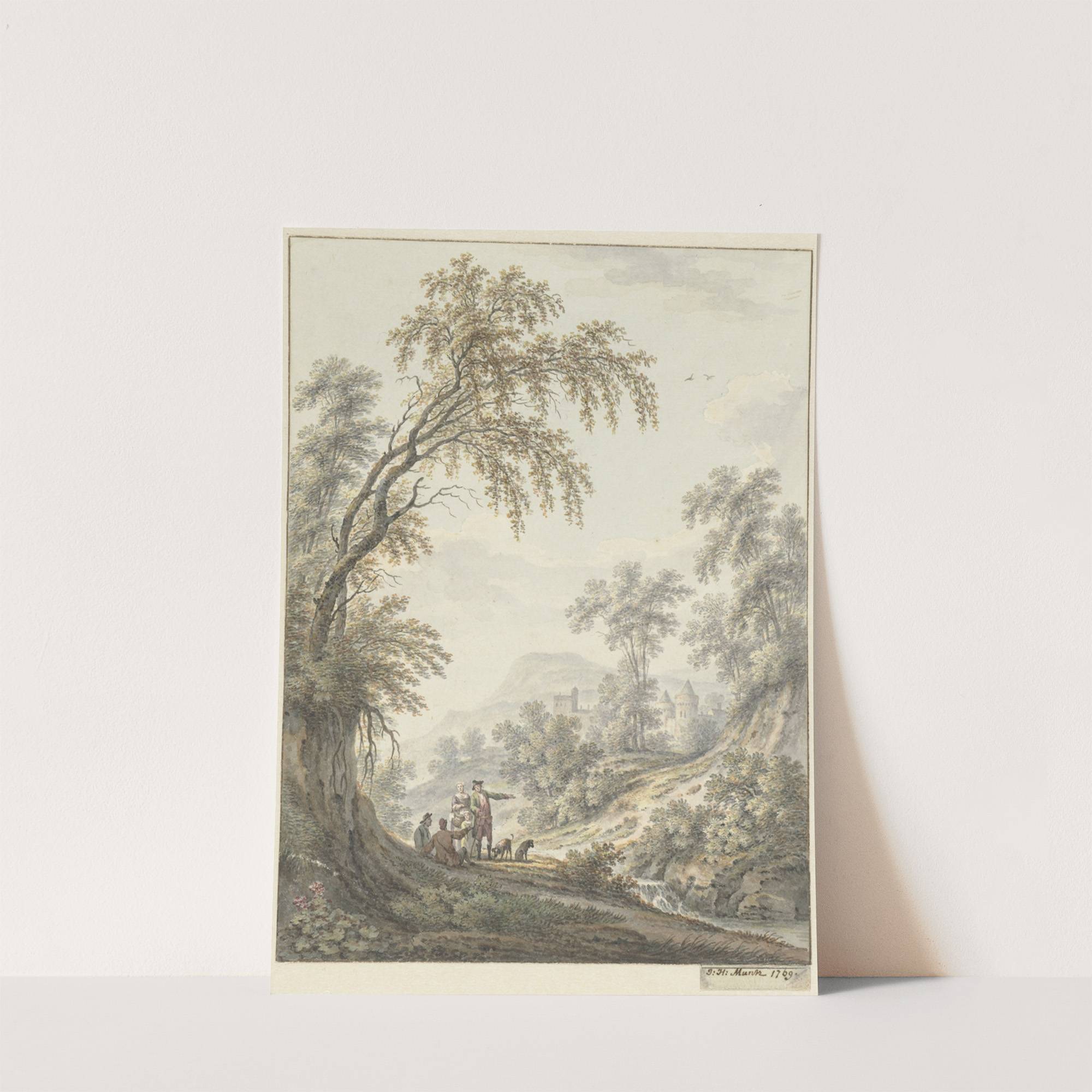 Landschap met watervalletje en in de verte een kasteel by Johann Heinrich Müntz - Wall Art Print