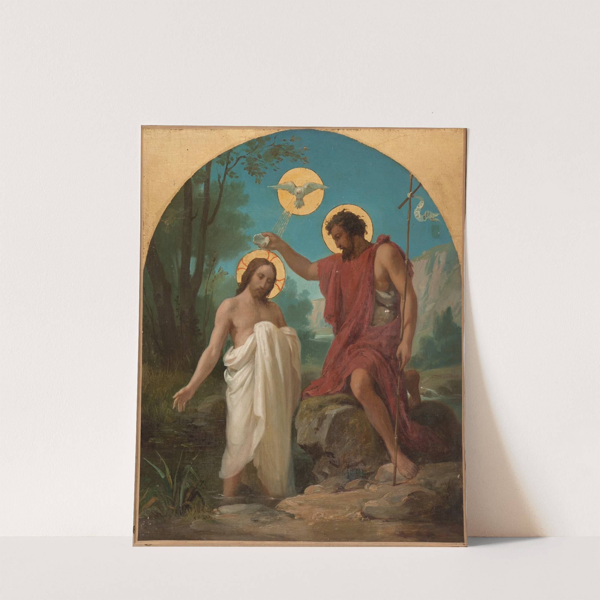 This evocative painting, "Le Baptême du Christ" by Alexandre Grellet, captures a poignant biblical moment with rich, vibrant colors and meticulous detail. The scene centers on Jesus' baptism, depicted with remarkable realism and depth. On the left, Jesus stands in...