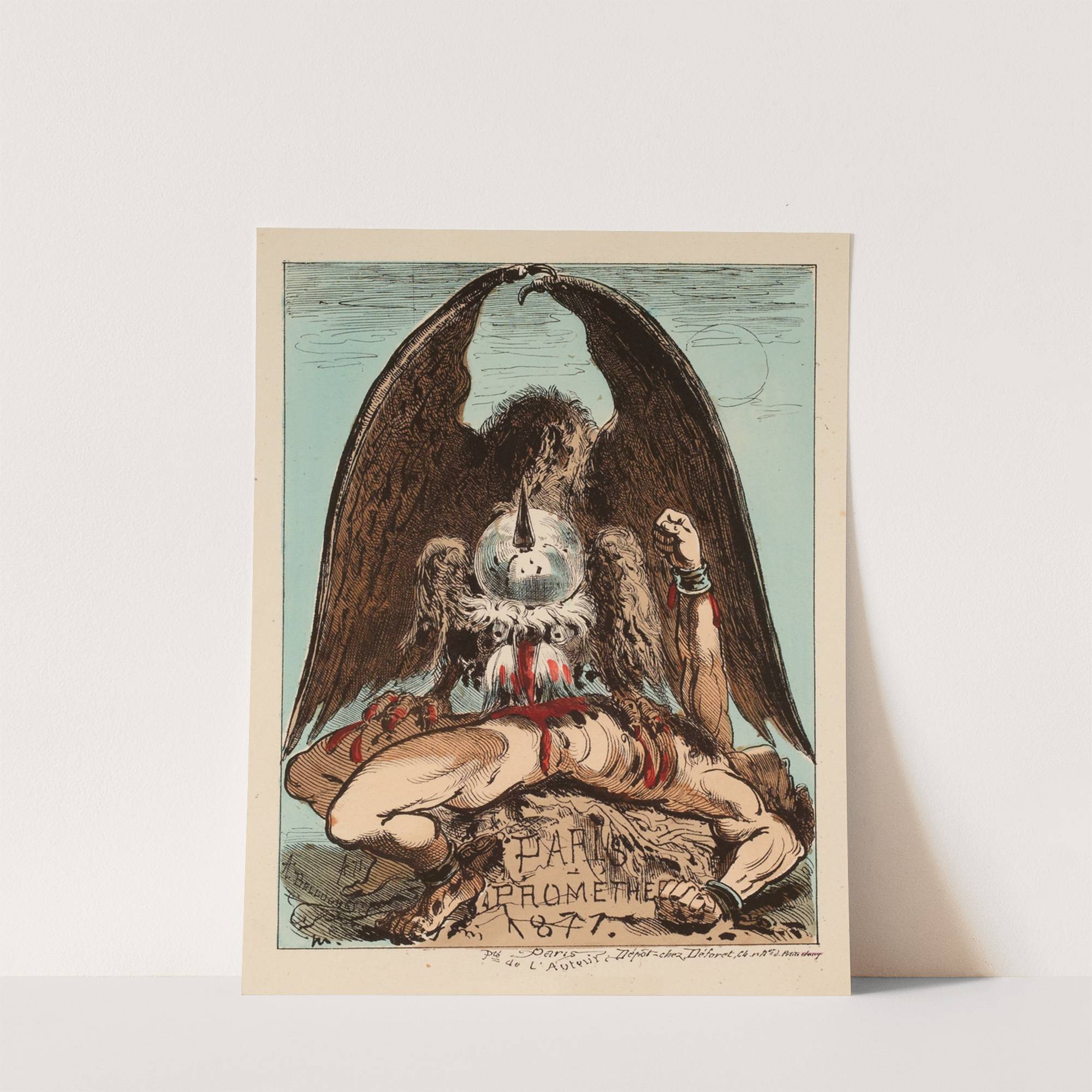 This striking print, titled "Le Prussien de l'intérieur," is created by artist Achille Belloguet in a dramatic, comic-book style. The central figure is a muscular human-like creature with tattered fur, partially covering its hulking frame. Its head is replaced by...