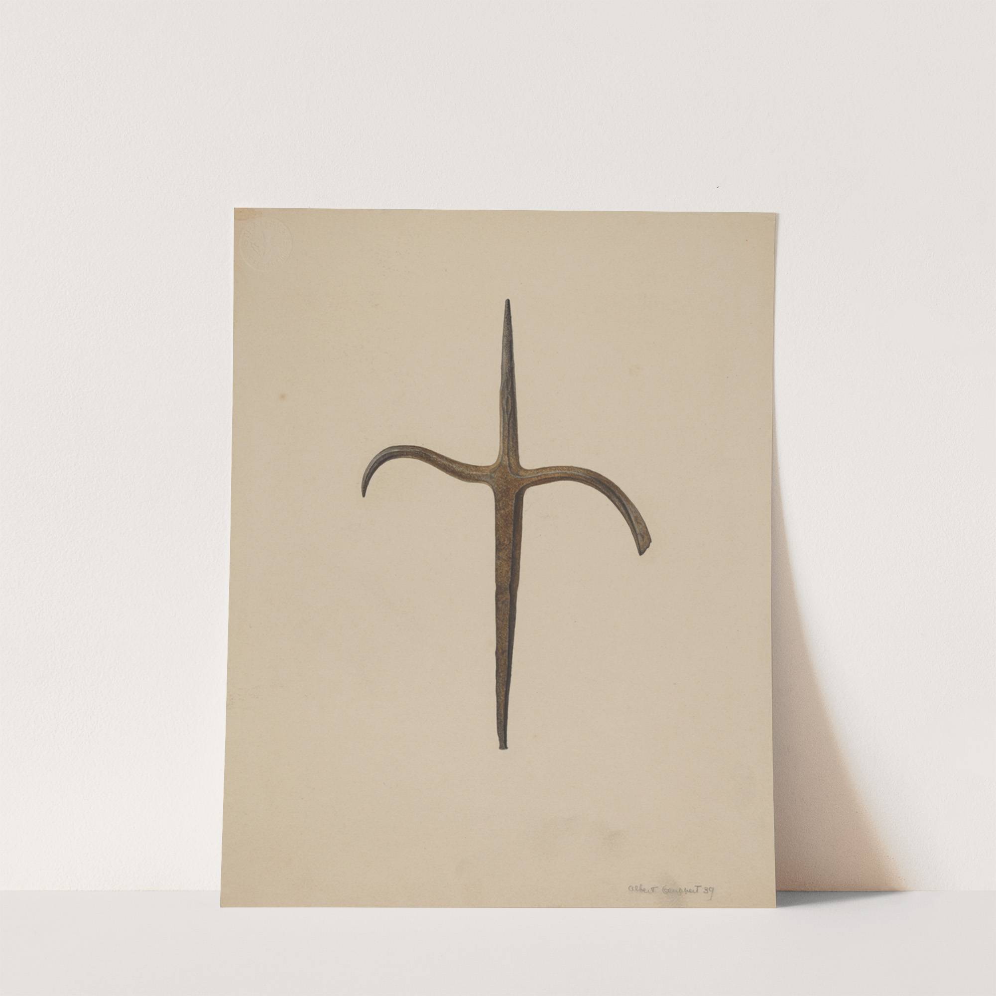 Discover "Lead Prospector?s Ore Pick" by Albert Geuppert, a stunning piece of art featuring an intricately detailed, vintage-style ore pick. This rustic artifact is rendered with remarkable precision, showcasing its weathered iron surface and distinctive T-shaped form. The iron arms...