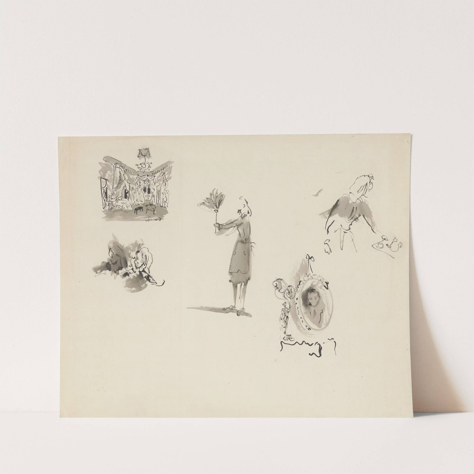 Les Bonnes – maquette de décor – planche – un décor, trois esquisses costumes bonne, portrait de Monsieur (1947) by Christian Bérard - Wall Art Print